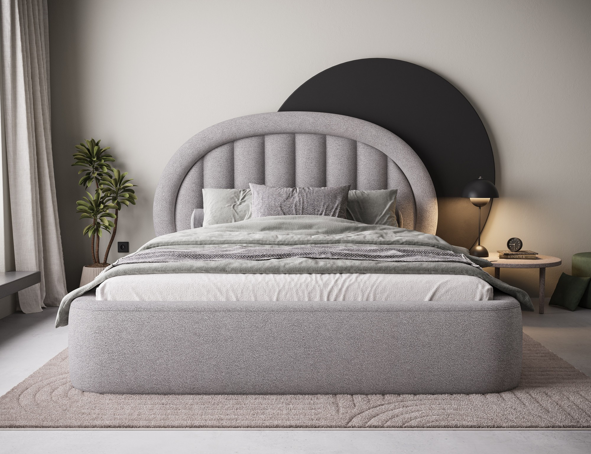 Postel do ložnice Tapedo kombinuje moderní design, funkčnost a pohodlí při spaní. Dostupné ve třech velikostních variantách: 140x200 cm, 160x200 cm a 180x200 cm, umožňuje přizpůsobit šířku vašim individuálním potřebám – 165 cm, 185 cm nebo 205 cm. Celková výška postele je 131 cm a hloubka je 221 cm, což konstrukci dodává elegantní a vyvážený vzhled. Výplň z vysoce kvalitní polyuretanové pěny T2130 zajišťuje optimální podporu těla a vynikající pohodlí. Postel Tapedo je vybavena praktickým úložným prostorem na lůžkoviny, který usnadňuje udržování pořádku ve vaší ložnici. Stabilní černé plastové nohy dodávají designu lehkost a moderní nádech. Díky své solidní řemeslné práci, funkčním vlastnostem a estetické formě, postel Tapedo dokonale doplňuje moderní interiérové uspořádání, čímž vytváří elegantní a útulný prostor pro odpočinek.
