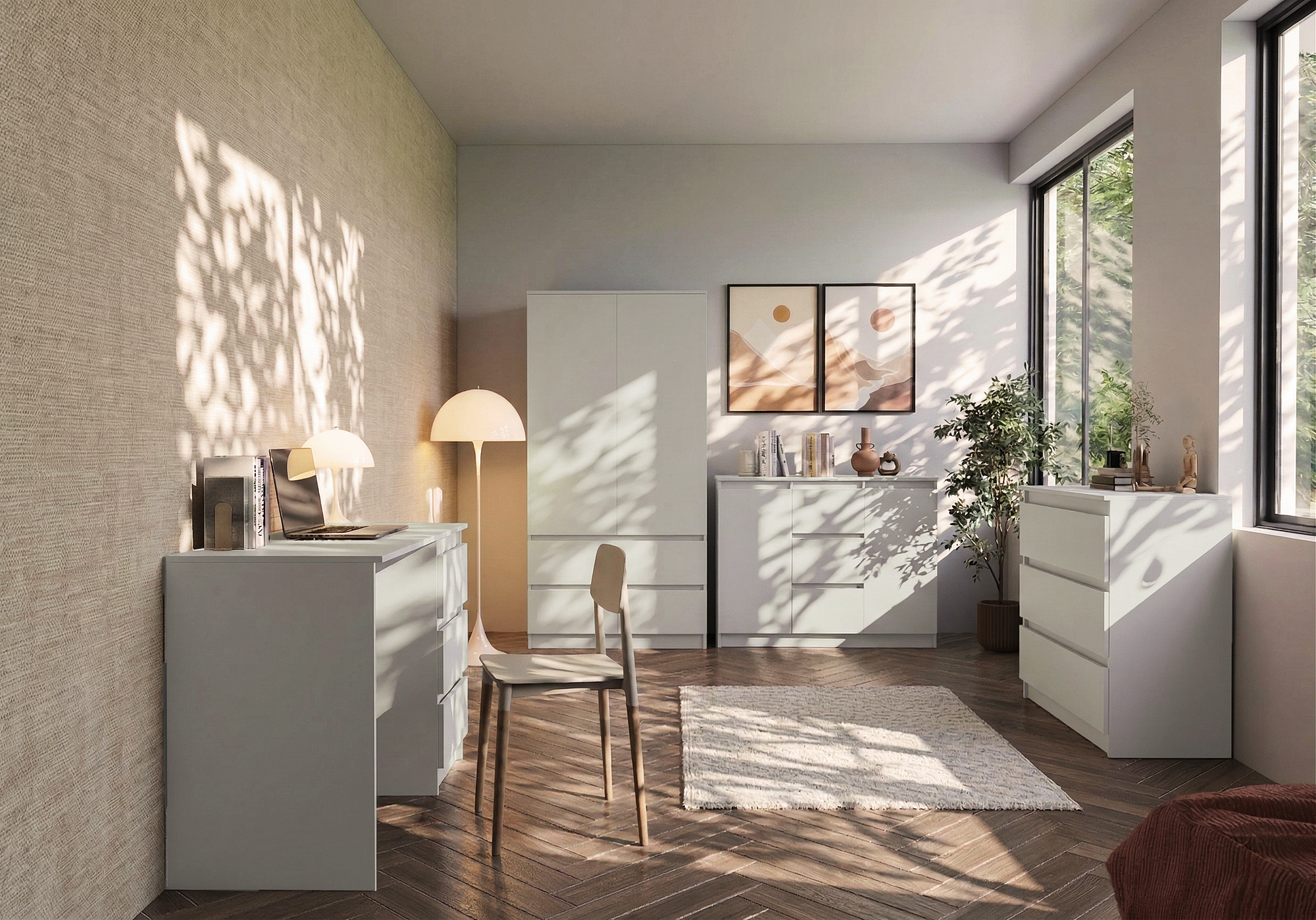 - Hluboké zásuvky: Skříně i komody obsahují hluboké zásuvky, které poskytují dostatek prostoru pro uložení oblečení nebo hraček.