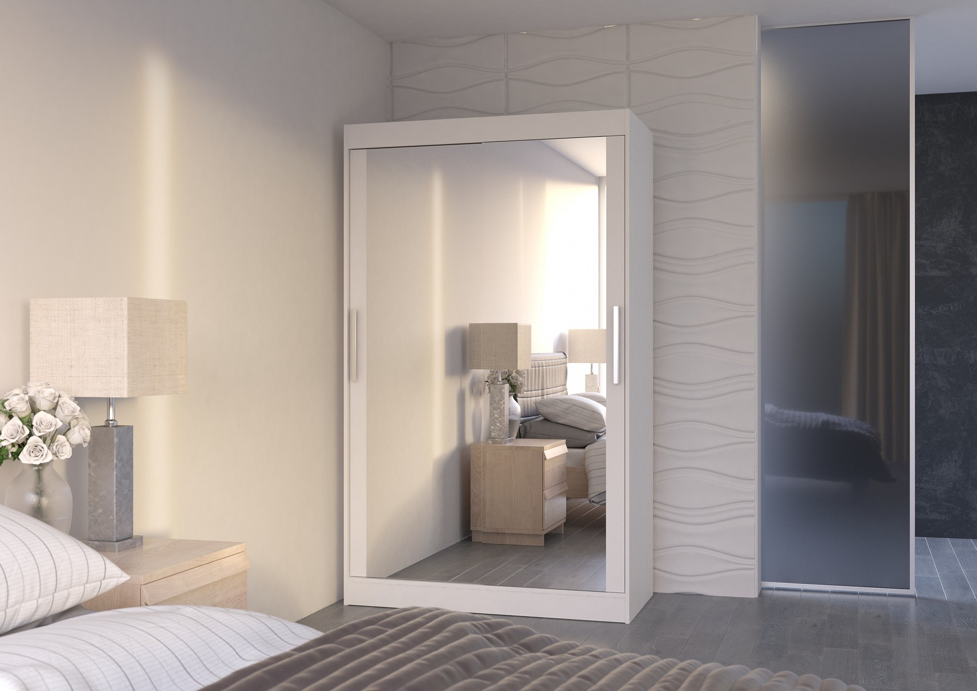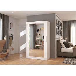 Šatní skříň s posuvnými dveřmi a zrcadlem TIBAGO 120 Bílá+Bílá