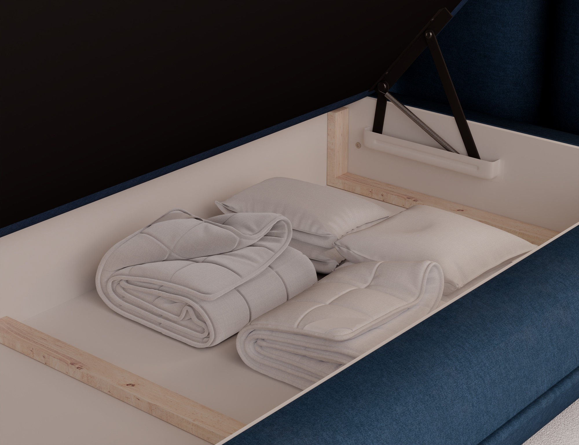 The Tonila bed is a modern and functional upholstered bed that combines sleeping comfort with practical solutions for the bedroom, making it an excellent choice for both contemporary and classic interiors; its solid construction with a height of 127 cm and a length of 235 cm ensures stability and comfortable back support, while the seat filling consisting of T2130 foam (storage box), bonell springs, and T2540 foam with a thickness of 2.5 cm provides proper body support and a high level of everyday comfort; the bed is equipped with a practical bedding storage compartment, which helps keep the bedroom organized, and the overall design is complemented by black furniture legs that add a modern and lightweight character; the Tonila model is available in three popular sizes: 140x200 cm, 160x200 cm, and 180x200 cm, allowing easy adjustment to the size of the room and individual needs, making it a comfortable, durable, and stylish bed for the bedroom.