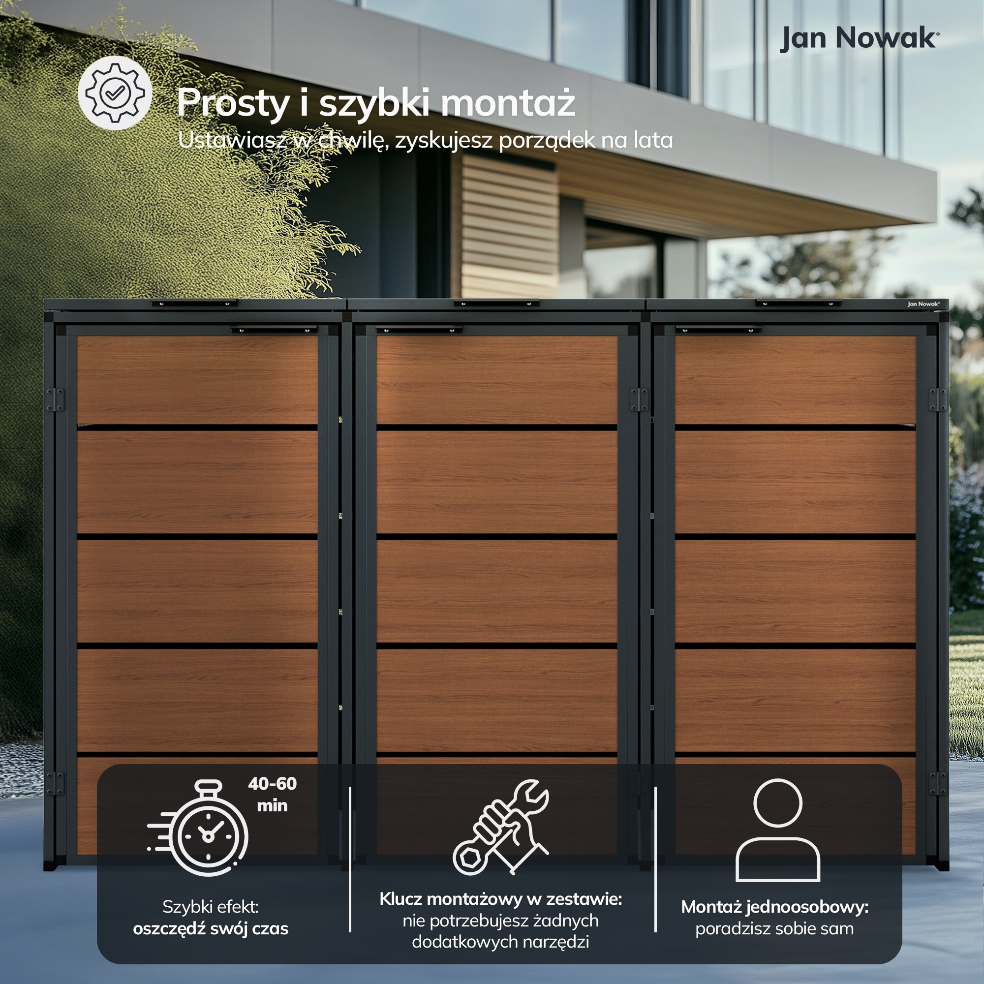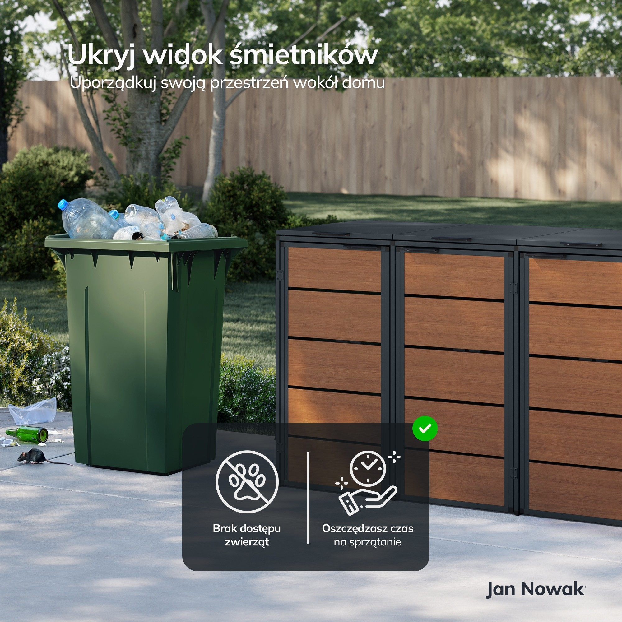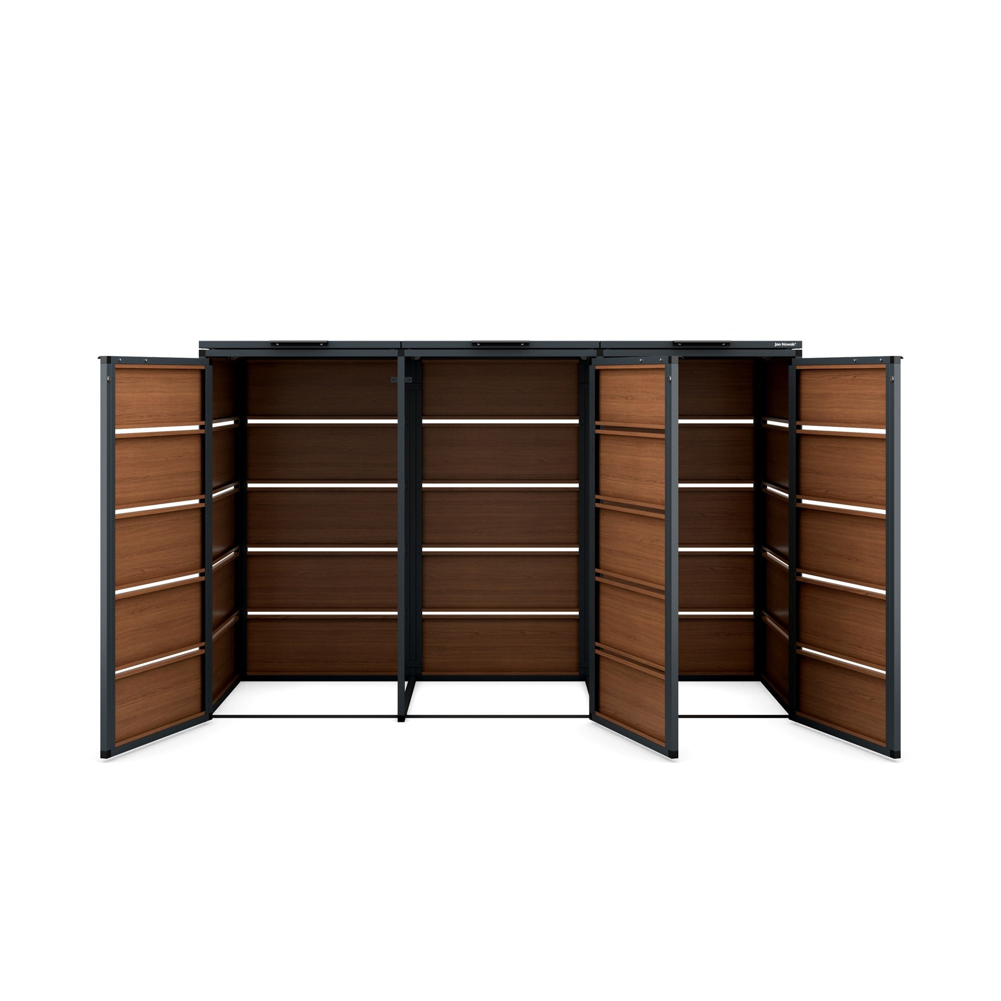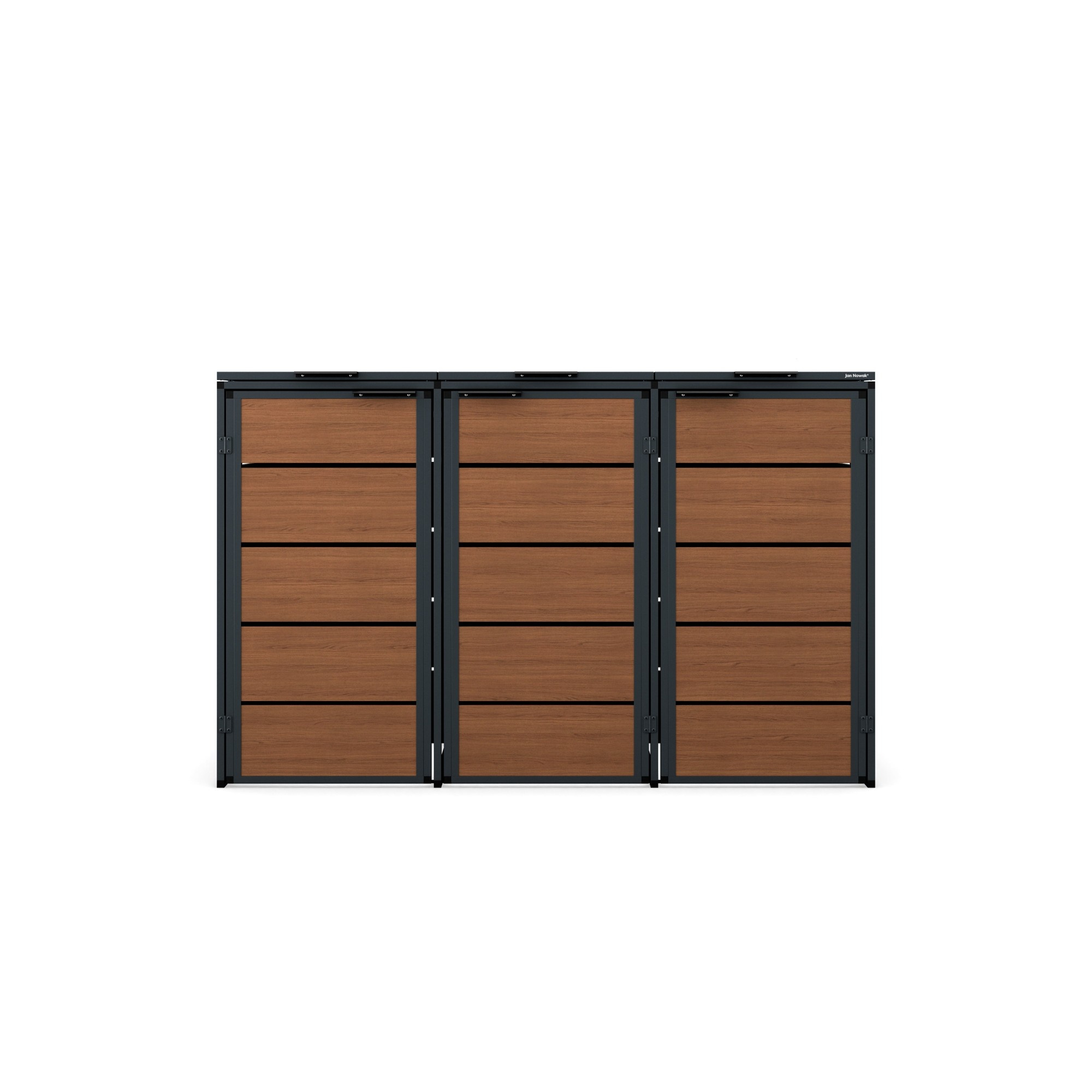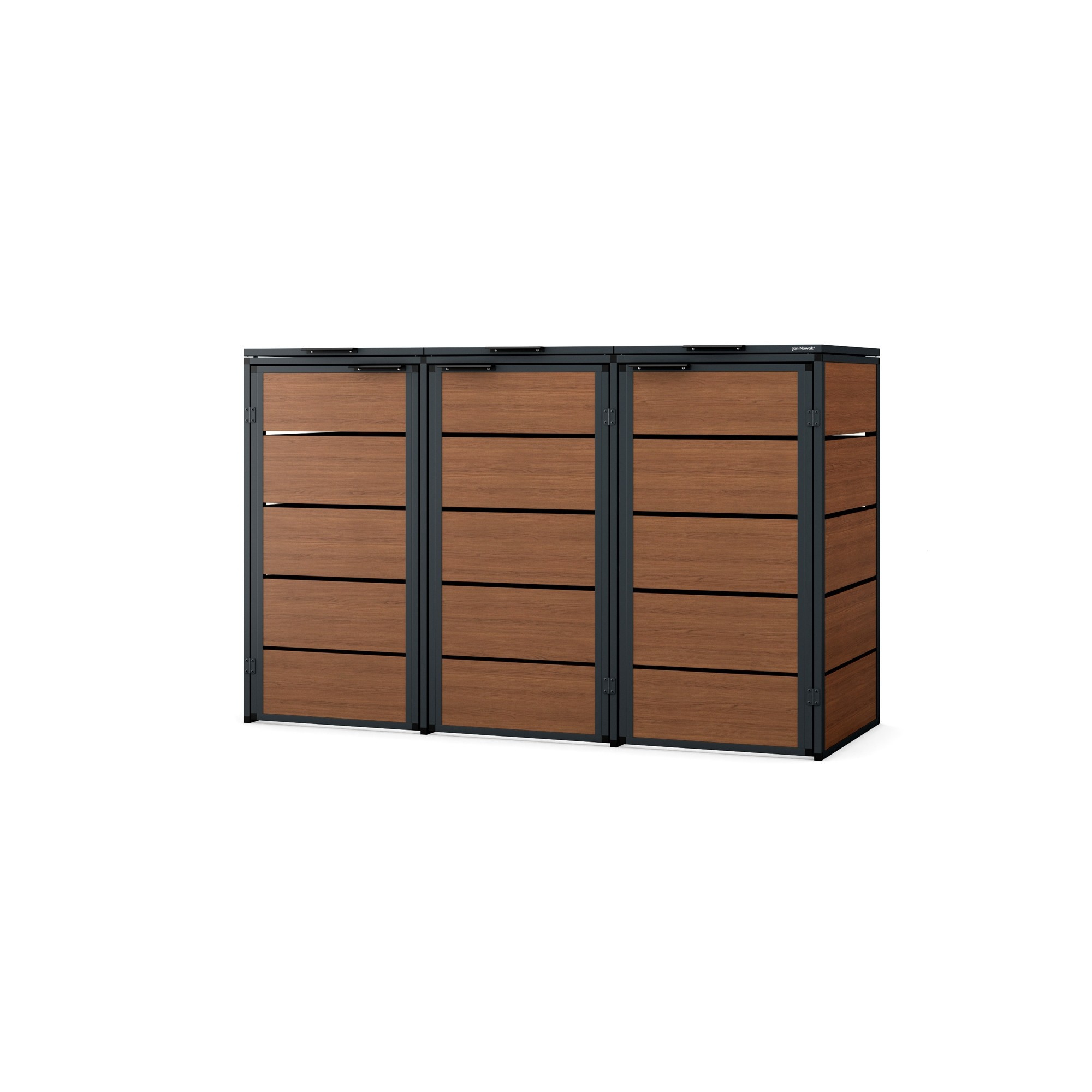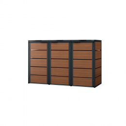 Tříkomorová popelnicová skříň 120L, antracit - ořech