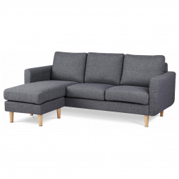 Trojmístná sedačka s taburetem v lehkém retro stylu. Charakteristickými prvky je minimalistický design, maximální variabilita a vše podtrhuje pohodlí. Sedačka je celočalouněná, včetně zad. Lze ji použít jak k přisazení ke stěně, tak i ve středu místnosti. Může sloužit i jako výrazný solitér. Své uplatnění najde v hale i obývacím pokoji. Potah je z látky v nadčasovém černém odstínu, kostra z masivního dřeva, vyplněná je kvalitní PU pěnou. Štíhlé kónické nohy jsou z masivního buku v přírodním odstínu a lakované transparentním lakem. Poškození podlahových krytin je eliminováno plastovými kluzáky. Nosnost sedačky je až 270 kg, počítáno cca 90 kg na osobu. Variabilita této sedačky spočívá v taburetu, kterým můžete v okamžiku změnit prodloužený roh za pravý, levý či nechat prodloužený střed. Stačí jen přesunout taburet a na sedačce přeskládat sedací polštáře. A jako bonus lze samozřejmě používat taburet samostatně, buď k relaxaci na opření nohou, k přechodnému sezení návštěv v místnosti … Těchto variant je nepřeberné množství. Pohodlí a prostornost této sedačky ocení jistě každý. A pokud si ještě opřete ruce o zvýšené područky anebo si i lehnete, budete dlouho otálet, než sedačku opustíte.