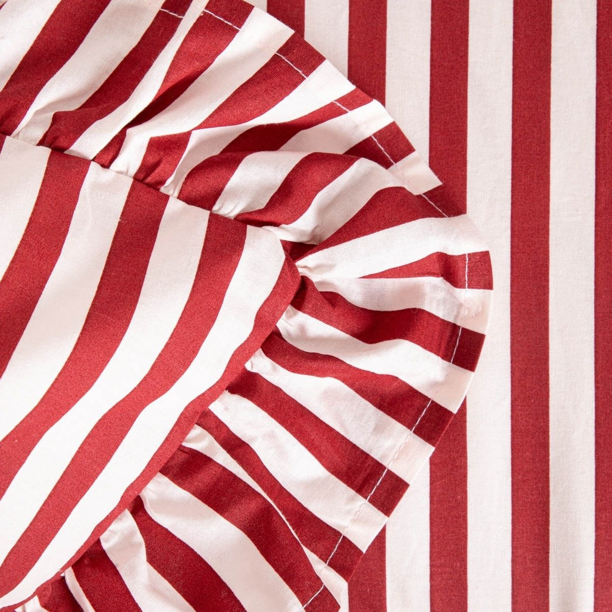 Pruhované bavlněné povlečení s volánkem vám pomůže vytvořit jedinečné zimní uspořádání ve vaší ložnici. Jedná se o stylovou sadu ve slavnostních barvách, která doplní aranžmá a vytvoří kouzelnou atmosféru ve vašem interiéru. Povlečení je odolné, elegantní a velmi snadno se čistí. Oblečte svůj domov na Vánoce a užijte si tento zvláštní čas se svými blízkými.
