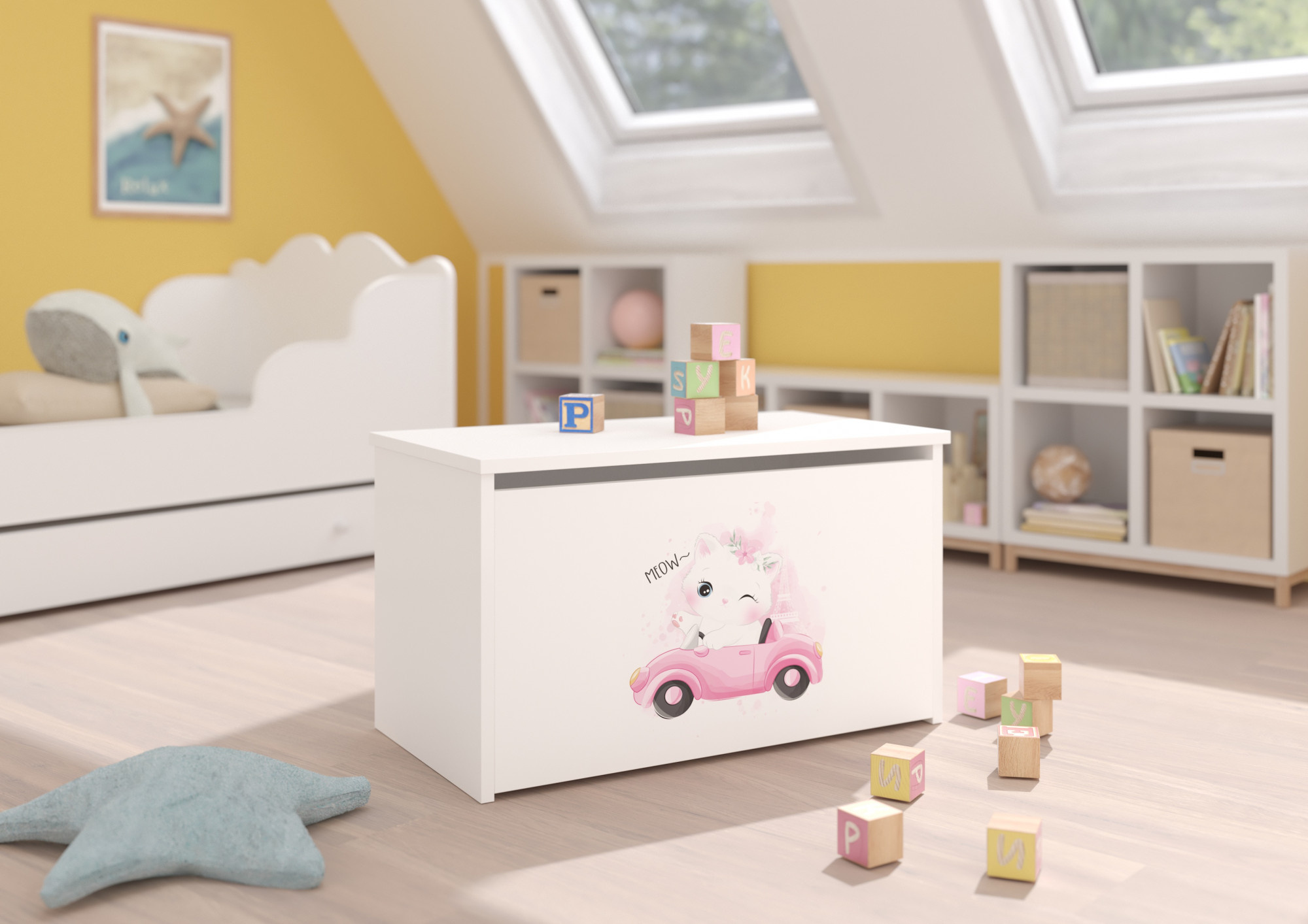 Truhla na hračky DARIA je ideální skrýš pro ukládání různých pokladů vašeho dítěte. Díky snadno ovladatelnému zvedáku dítě bez obtíží otevře a zavře kufr. Přední část truhly je v bílé barvě a může být ozdobena barevnými potisky.