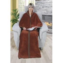 Tento praktický televizní pytel je vyroben z velmi příjemného materiálu, který Vás zahřeje. Je opatřen dělitelným zipem o délce 117cm. Ve spodní části pytle jsou čtyři patenty, které lze zapnout. Tam, kde začíná zip, v horní části, je jeden patent vpravo a jeden vlevo. Zapnutím těchto patentů vytvoříte rukávy. Ve vrchní části je ještě jeden patent, který po zapnutí vytvoří límec. Pytel můžete použít rozepnutý i jako klasickou deku na přikrytí.