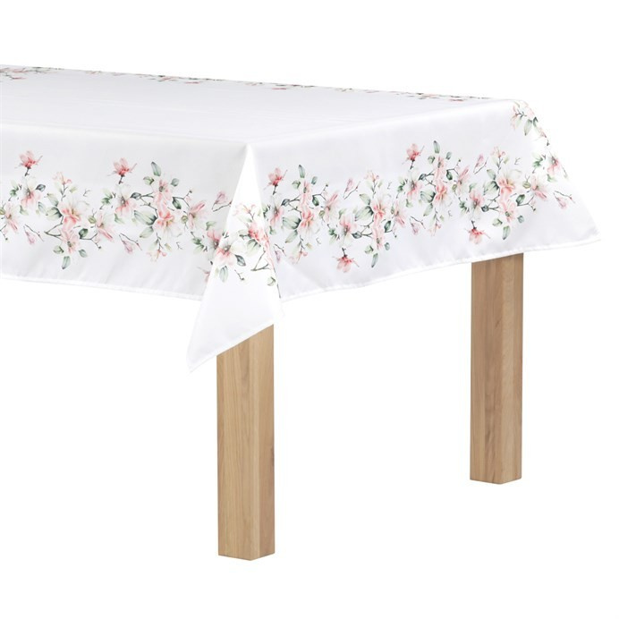 Ubrus s motivem magnolie bílé barvy. Rozměr 130x160 cm. Materiál 100 % polyester. Praní na 30°C.