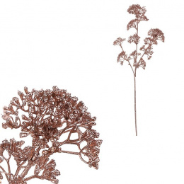 Umělá větev s drobnými květy v jemné růžové barvě přináší do interiéru nádech něžnosti a svěžesti. Vyrobena z plastu, je odolná a snadno udržovatelná, což ji činí praktickou dekorací pro každý prostor. Větev lze využít samostatně nebo jako součást větších aranžmá, kde oživí vzhled místnosti přirozeným dojmem květin.