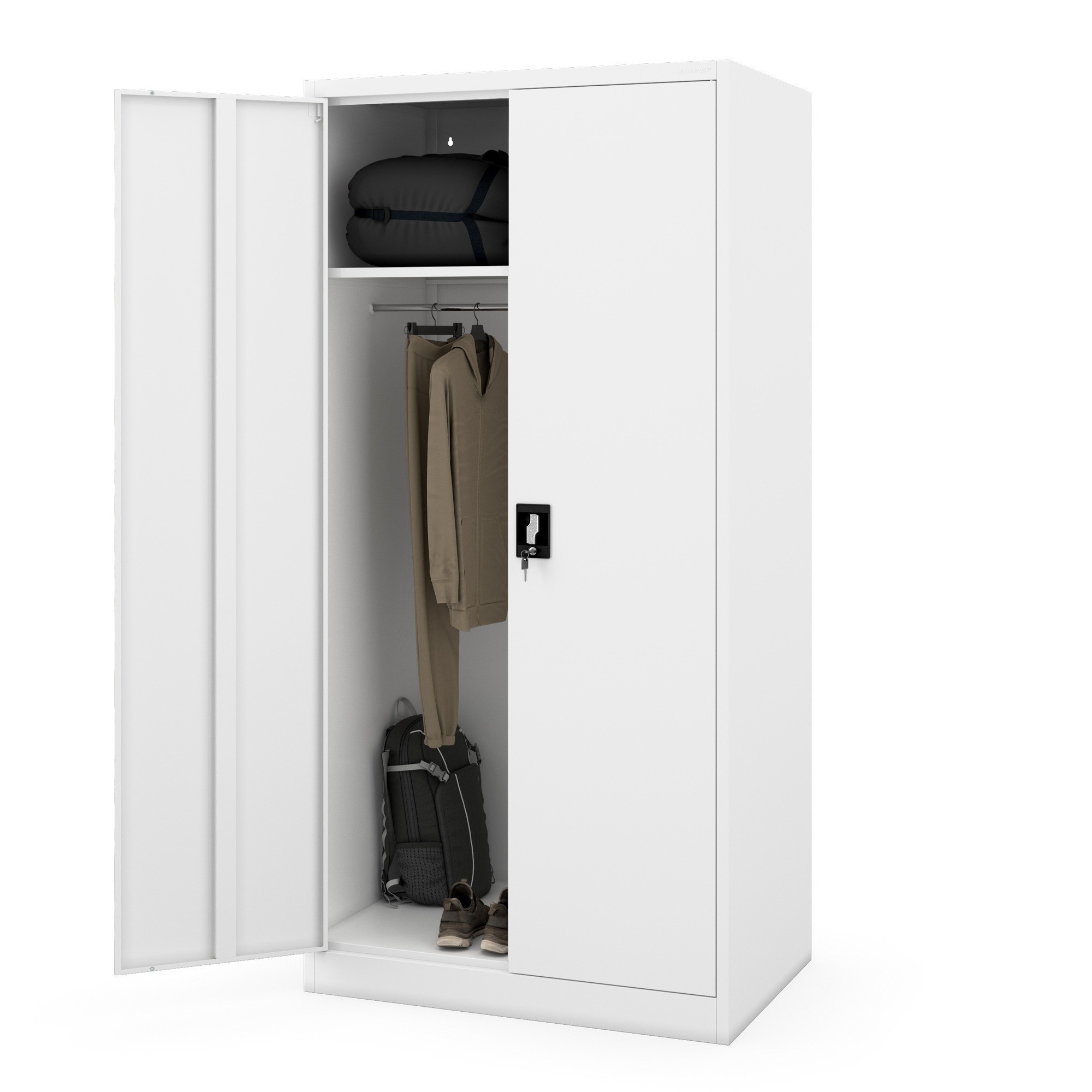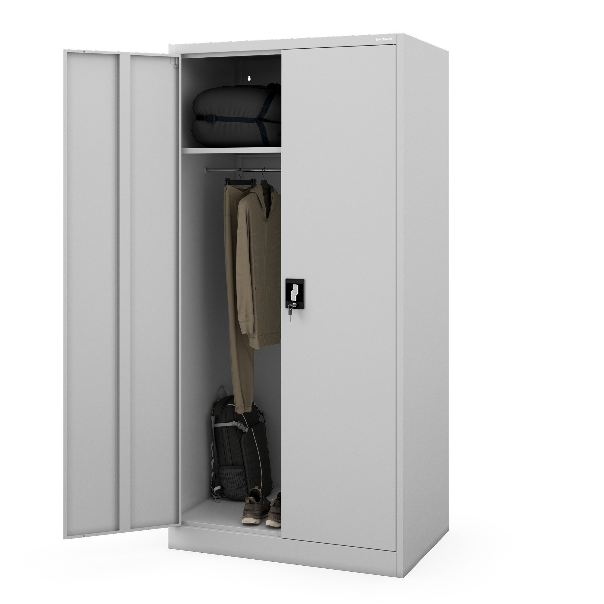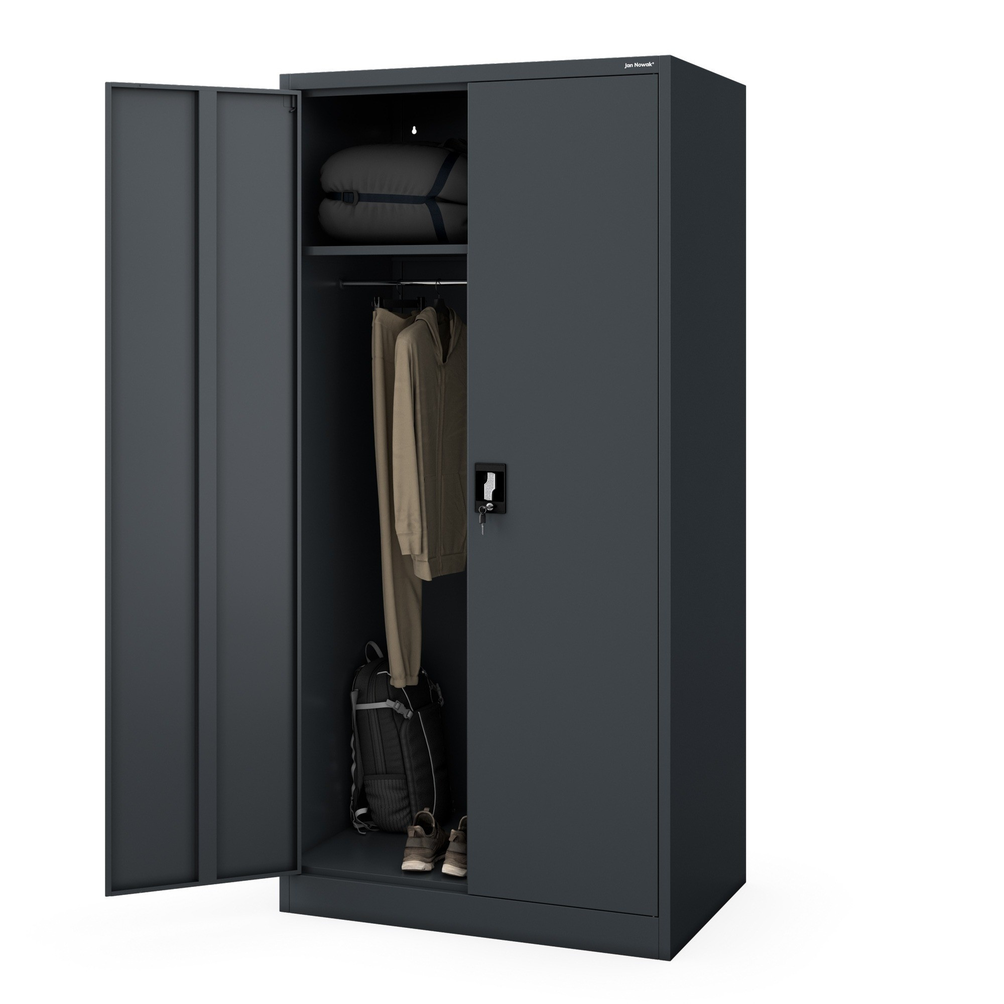 - Bezpečnost především: Dveře skříně jsou vybaveny spolehlivým tříbodovým zámkem, který chrání obsah před neoprávněným přístupem. Můžete tak bez obav uložit cenné nářadí, citlivé dokumenty nebo nebezpečné látky.
