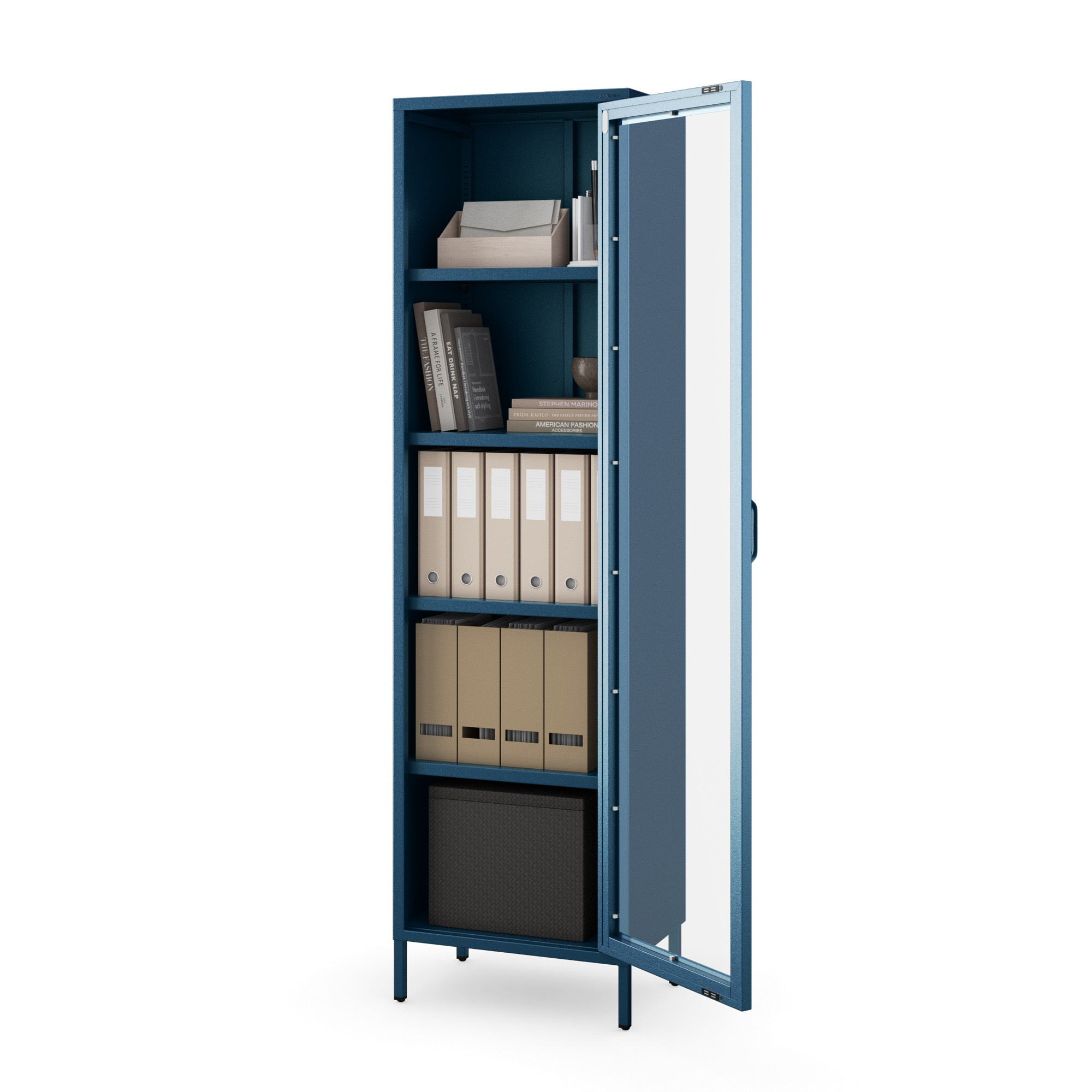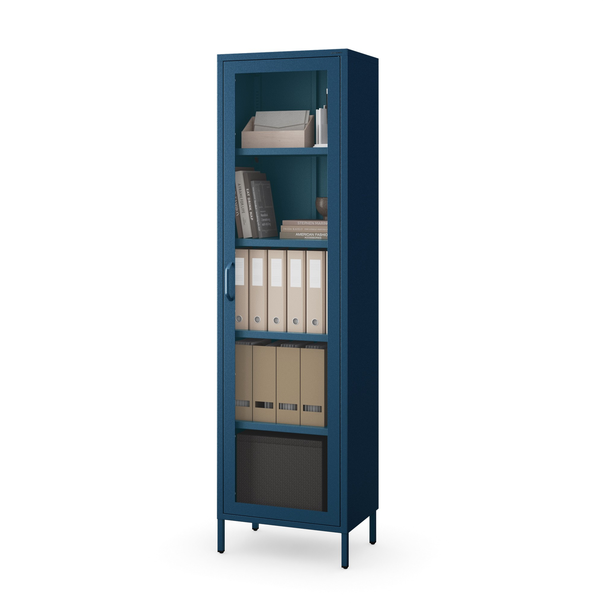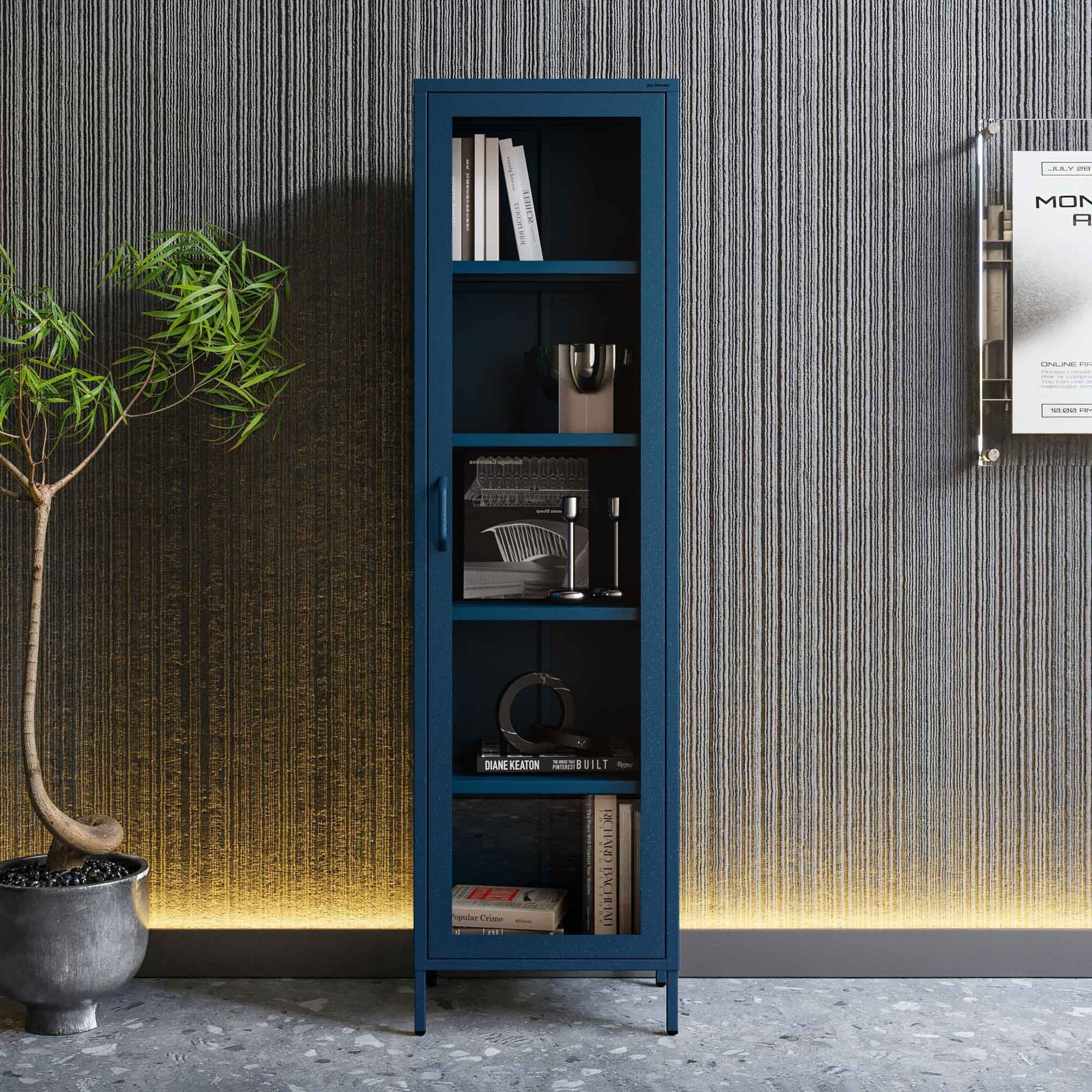 Prosklená vitrína úzká v modré barvě Moderní LUIGI 500 x 1800 x 350 mm