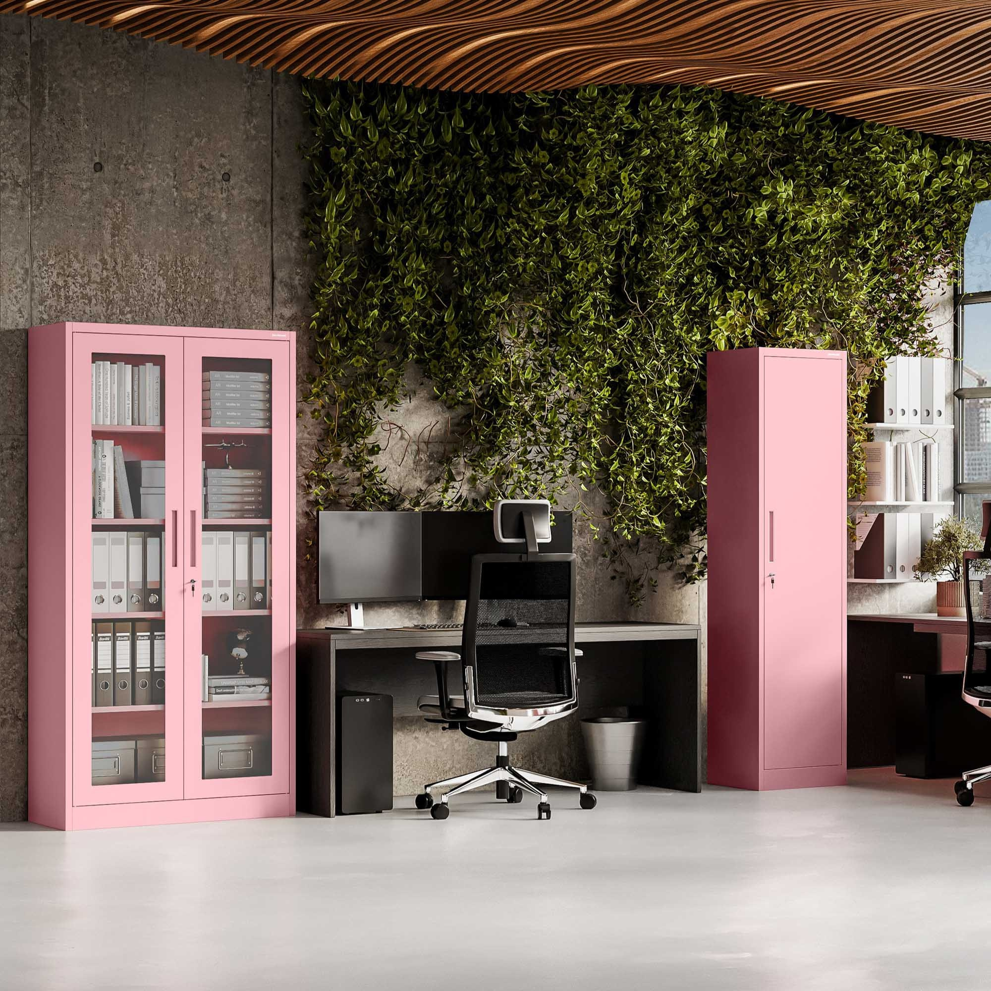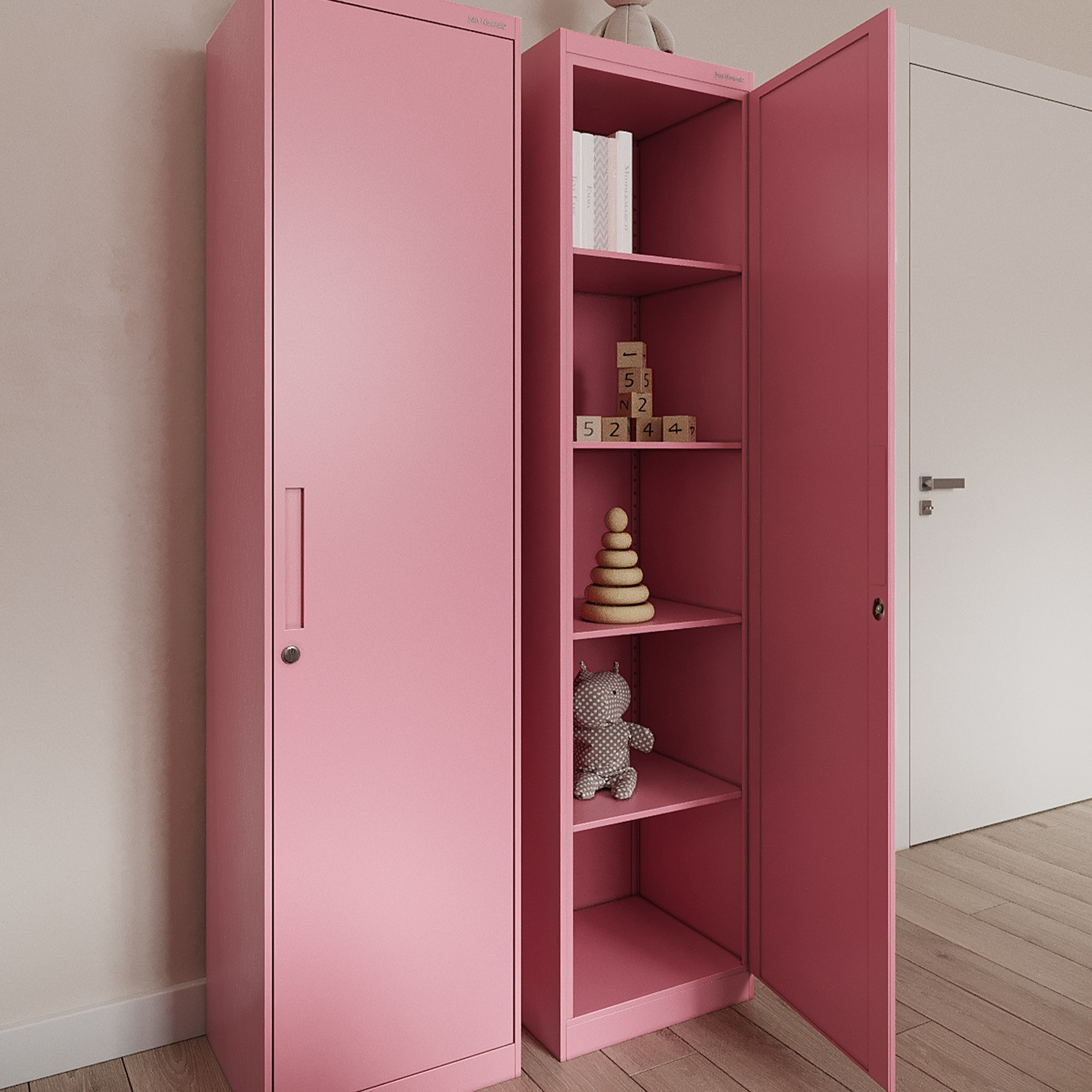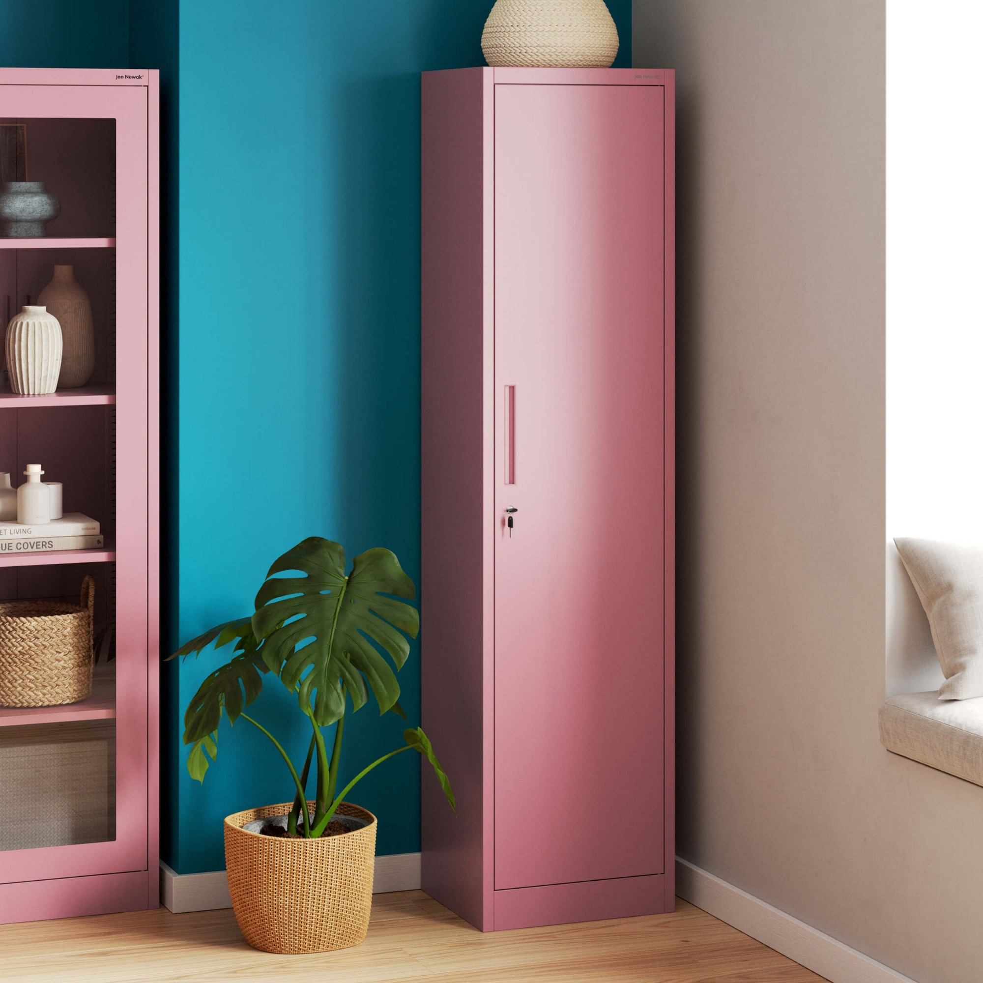 Úzká skříňka do kanceláře ALEX, 450 x 1850 x 400 mm, Fresh Style: pudrově růžová