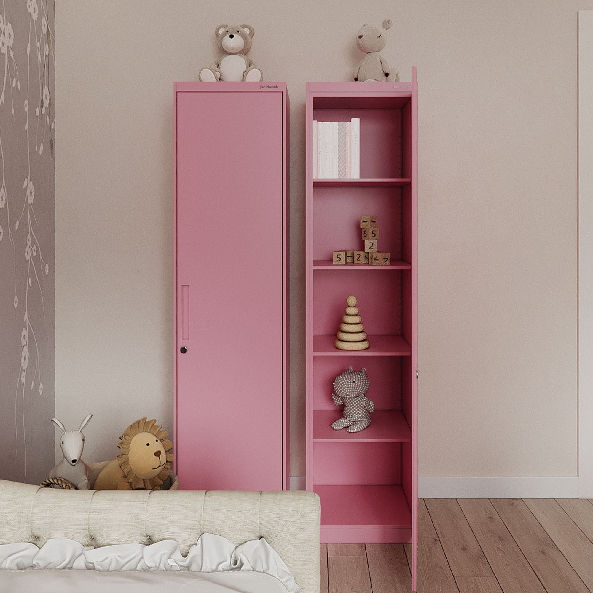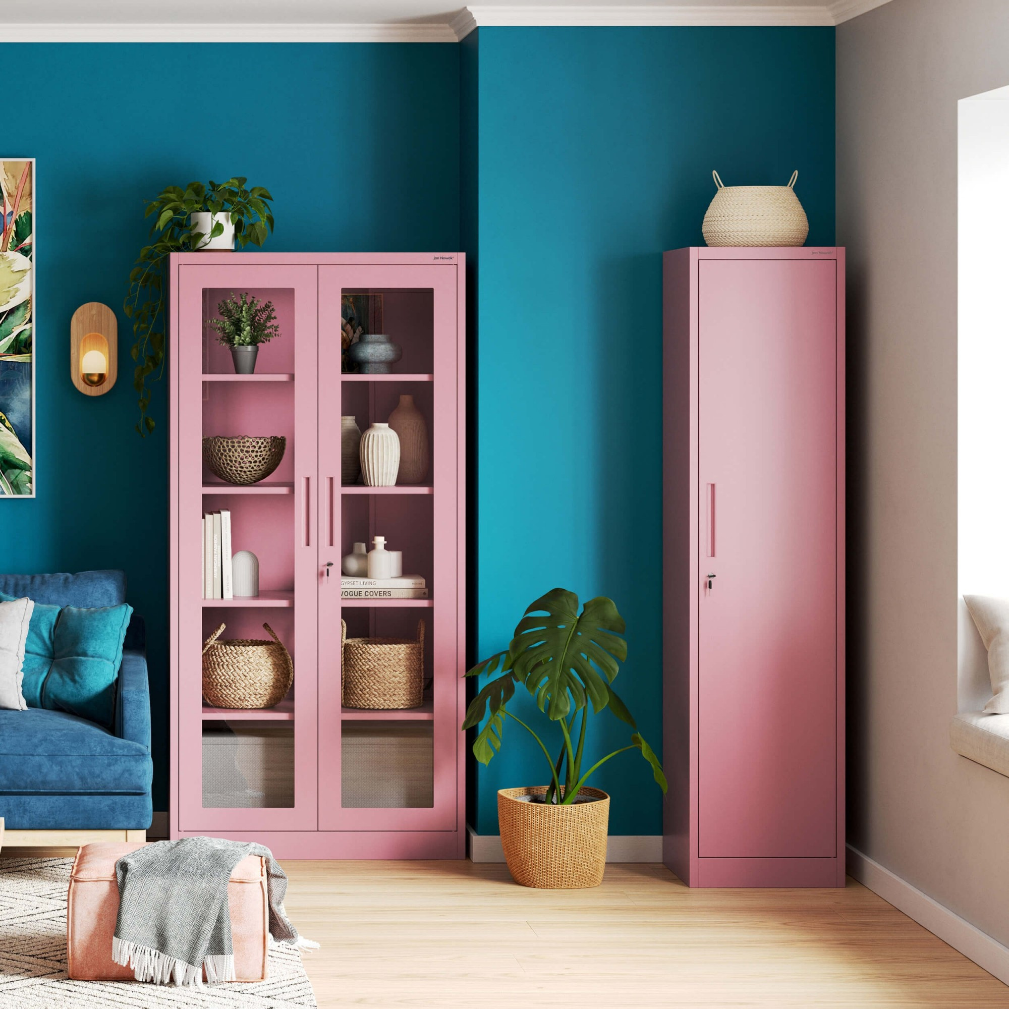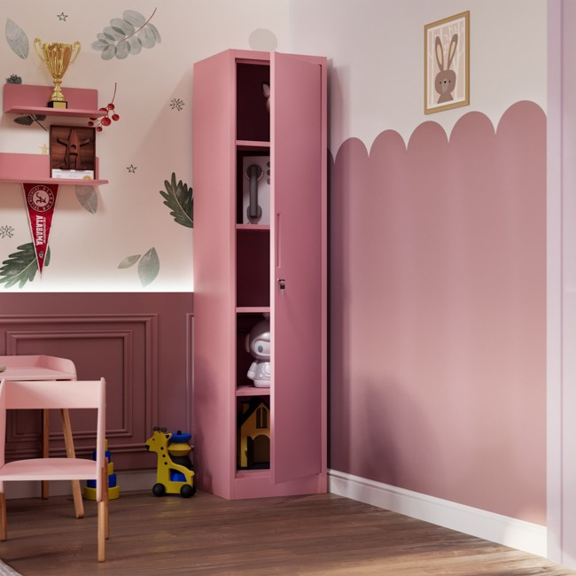 Úzká skříňka do kanceláře ALEX, 450 x 1850 x 400 mm, Fresh Style: pudrově růžová