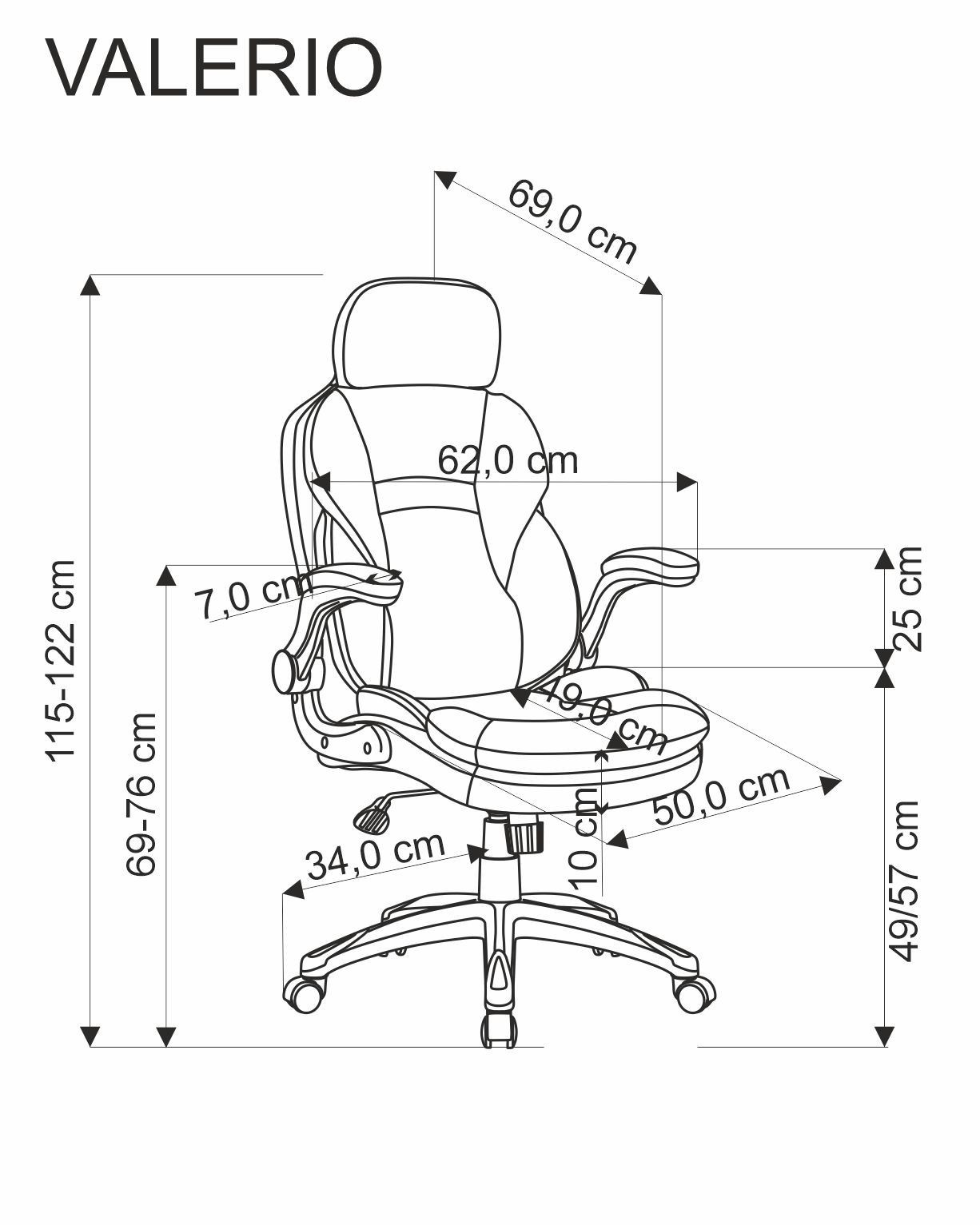 | Výška sedu - nastavitelná v cm | 49-57 |