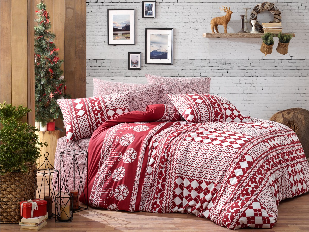 Vánoční bavlněný povlak na polštář Christmas red 40x40