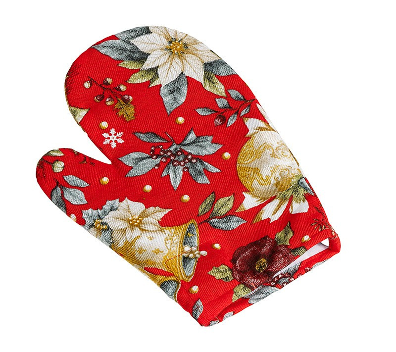 Kuchyňský chňapka je nepostradateným doplňkem pro každou hospodyňku. Je ušita z dostatečně silného materiálu ( výplň tvoří netkaná textilie), díky čemuž se zabrání zbytečnému popálení. Navíc je chňapka opatřena praktickým magnetem a poutkem pro zavěšení. Ve stejném vánočním designu je možné objednat i ubrus na stůl nebo povlak na polštářek 40x40 cm.