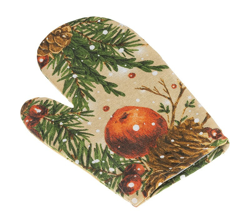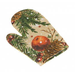 Kuchyňský chňapka je nepostradateným doplňkem pro každou hospodyňku. Je ušita z dostatečně silného materiálu ( výplň tvoří netkaná textilie), díky čemuž se zabrání zbytečnému popálení. Navíc je chňapka opatřena praktickým magnetem a poutkem pro zavěšení. Ve stejném vánočním designu je možné objednat i ubrus na stůl nebo povlak na polštářek 40x40 cm.