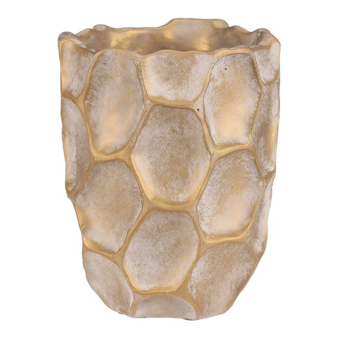 Váza betonová - vzor buněk, vel. M, béžovo-zlatá