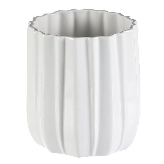 Keramická váza v bílé barvě s pravidelnými svislými vlnkami přináší moderní eleganci do každého interiéru. Její kulatý tvar a glazovaný povrch s čistým jednobarevným designem ji činí ideální volbou pro vystavení vašich oblíbených květin, případně doplnění dalších přízdob a dekorací.