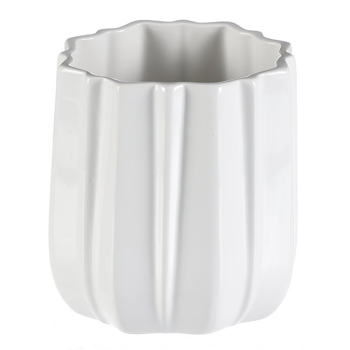 Keramická váza v bílé barvě s pravidelnými svislými vlnkami přináší moderní eleganci do každého interiéru. Její kulatý tvar a glazovaný povrch s čistým jednobarevným designem ji činí ideální volbou pro vystavení vašich oblíbených květin, případně doplněné dalšími přízdobami a dekoracemi.