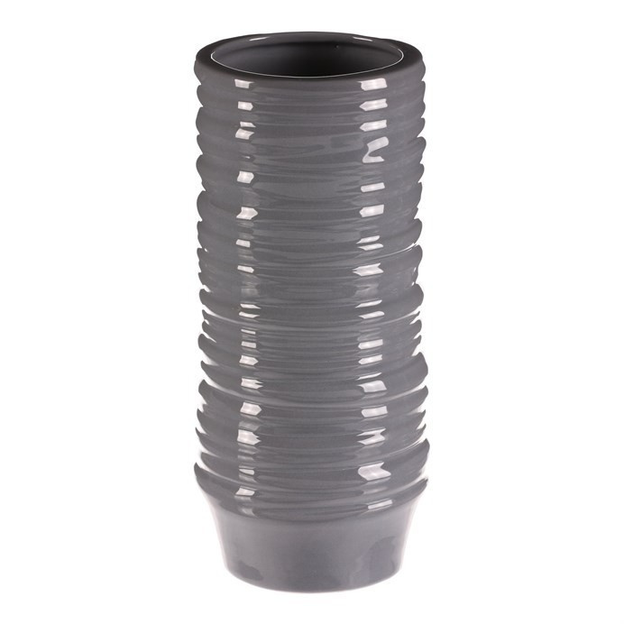 Tato keramická váza v šedé glazované barvě s kulatým tvarem a jemným vzorem vlnek na povrchu dodá vašemu interiéru elegantní a sofistikovaný vzhled. Jednobarevné provedení a hladký design z ní činí univerzální dekoraci a skvělý základ pro oblíbené květiny. Hodí se svým designem do jakéhokoli prostoru, ať už na stůl, poličku nebo komodu.