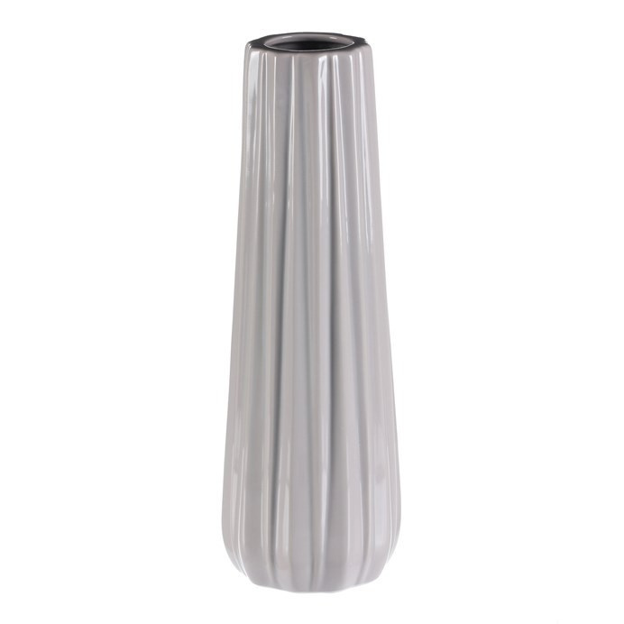 Keramická váza ve světlé šedé barvě s jemnými svislými vlnkami na povrchu, přináší do vašeho prostoru sofistikovanou eleganci. Její jemný a postupně se zužující tvar, v kombinaci s jednolitým barevným provedením, skvěle doplní jakýkoli vybraný prostor a vytvoří neodolatelné aranžmá, ať už s květinami, nebo jinými dekoracemi.