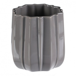 Keramická váza v tmavé šedo-krémové barvě s pravidelnými svislými vlnkami přináší moderní eleganci do každého interiéru. Její glazovaný povrch a čistý design ji činí ideální volbou pro vystavení vašich oblíbených květin, případně doplnění dalšími dekoracemi.