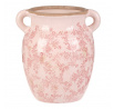 Váza keramická - retro styl, tvar amfory, růžové květy