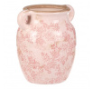 Váza keramická - retro styl, tvar amfory, růžové květy