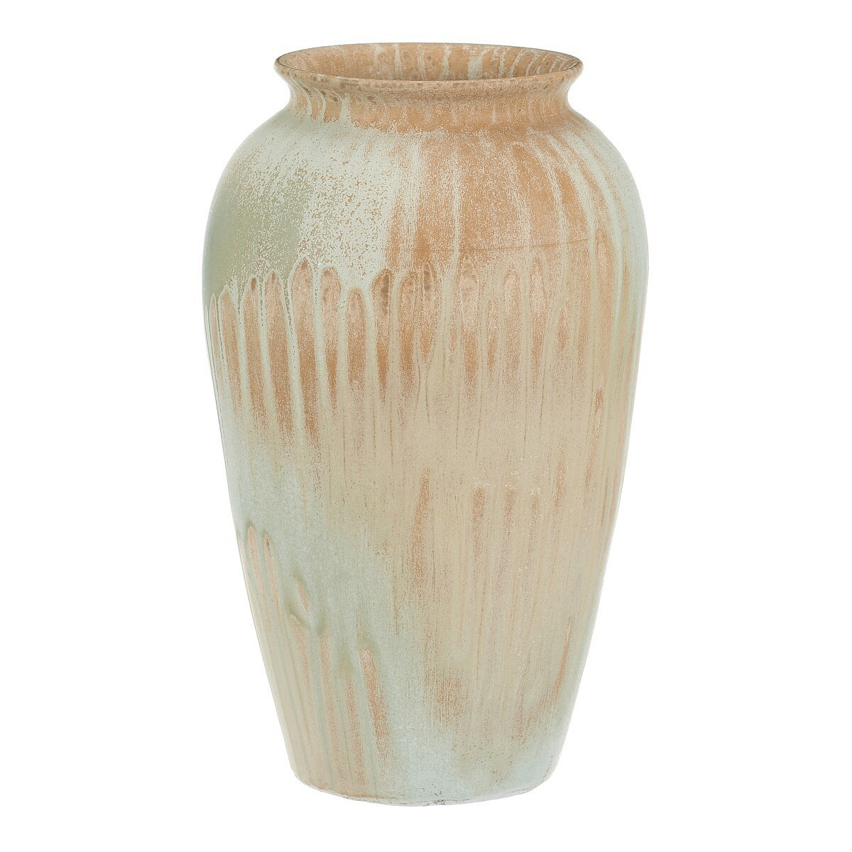 Keramická váza o výšce 30 cm ve tvaru amfory zaujme originálním mixem odstínů, kde se prolínají barvy od béžové přes světle hnědou až po zelenou. Její jedinečný design dodá prostoru nádech elegance a přírody, ať už ji využijete pro rostliny nebo jako samostatnou dekoraci doplněnou třeba ještě vhodnými přízdobami.