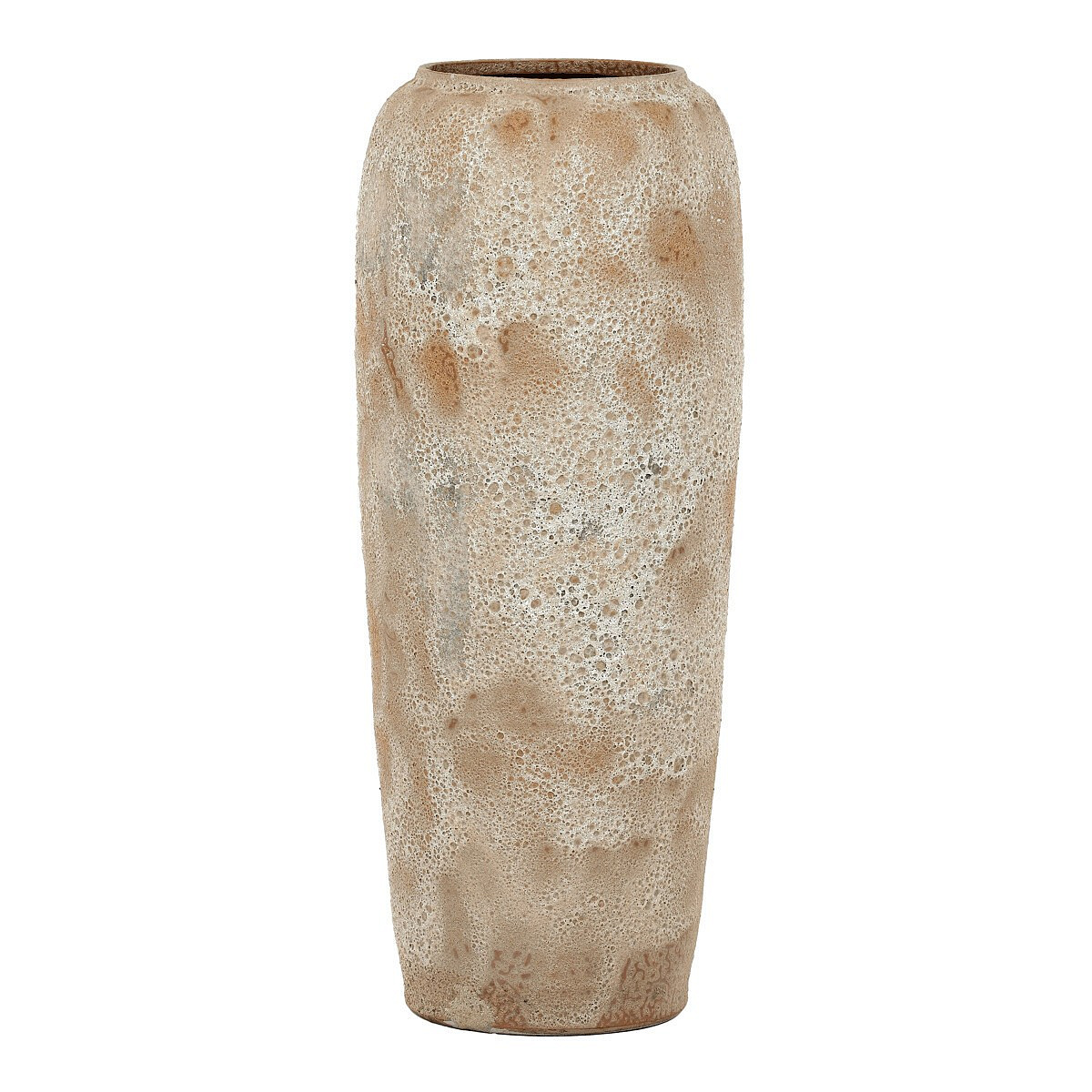 Keramická váza o výšce 90 cm v jemné světle béžové barvě připomíná tvar starověké nádoby. Mírně zaoblený design a střídání odstínů béžové až bílé dodávají váze nadčasový a elegantní vzhled. Ideální pro větší a robustnější rostliny, které se v ní budou skvěle vyjímat. Působí jako výrazný prvek v každém interiéru.