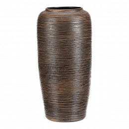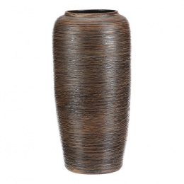 Keramická váza o výšce 40 cm v hnědém provedení zaujme jemným zaobleným tvarem a vodorovnými rýhami, které jí dodávají autentický vzhled ruční práce, jako by ji vytvořil starověký mistr. Skvěle podtrhne krásu každé rostliny a povznese ji na novou úroveň.