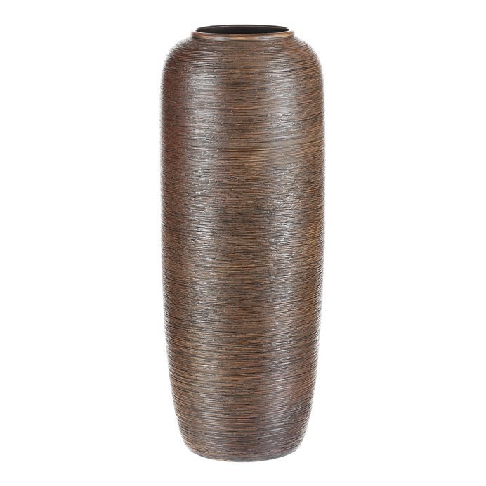 Keramická váza o výšce 50 cm v hnědém provedení zaujme jemným zaobleným tvarem a vodorovnými rýhami, které jí dodávají autentický vzhled ruční práce, jako by ji vytvořil starověký mistr. Skvěle podtrhne krásu každé rostliny a povznese ji na novou úroveň.