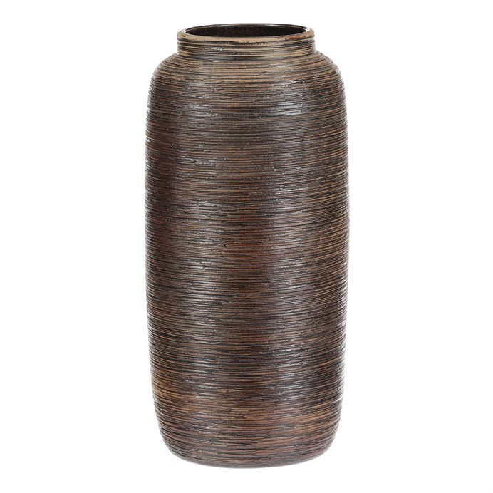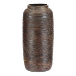 Keramická váza o výšce 35 cm zaujme jemně zaobleným tvarem, užším hrdlem a hnědým povrchem s vodorovnými rýhami, které jí dodávají starobylý vzhled. Jako by ji vyrobili samotní antičtí mistrové. Skvěle doplní váš interiér a nechá zasazené rostliny nádherně vyniknout.