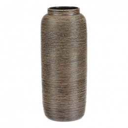 Keramická váza o výšce 40 cm zaujme jemně zaobleným tvarem, užším hrdlem a hnědým povrchem s vodorovnými rýhami, které jí dodávají starobylý vzhled. Jako by ji vyrobili samotní antičtí mistrové. Skvěle doplní váš interiér a nechá zasazené rostliny nádherně vyniknout.