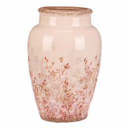 Keramická váza ve velikosti L zaujme svým zaobleným tvarem a jemným retro dekorem s růžovými květy, které působí přirozeně a vnášejí do prostoru příjemnou atmosféru. Povrch vázy je glazovaný s mírně patinovaným okrajem, což podtrhuje její vintage charakter. Váza je vhodná pro aranžmá čerstvých i sušených květin a díky svému rozměru se stane výrazným doplňkem interiéru. Stabilní základna zajišťuje pevné postavení na různých typech podkladů. Kombinace přírodních odstínů a květinového motivu umožňuje snadné sladění s různými styly dekorací.