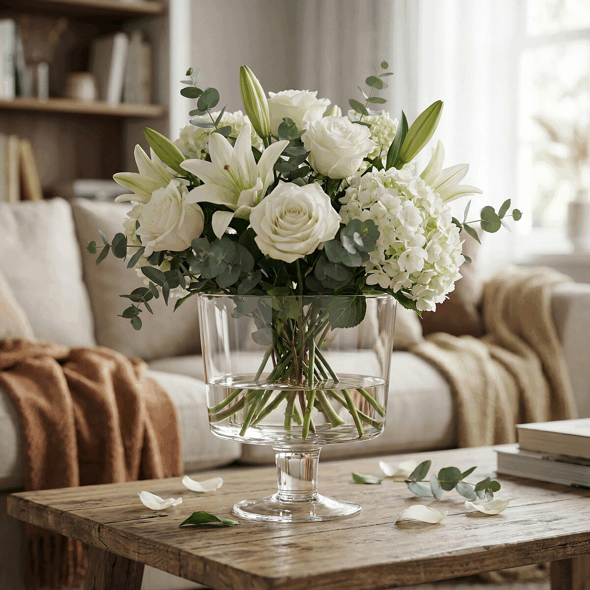 Skleněná váza ve tvaru číše v čirém provedení nabízí jednoduchý a nadčasový design vhodný do různých interiérů. Její průhledné tělo umožňuje efektivní vystavení květin či dekorací a zároveň působí lehce a vzdušně. Váza stojí na stabilní nožce, která zajišťuje pevnou oporu a vyváženost celého kusu. Přírodní sklo se snadno udržuje a je navrženo pro dlouhou životnost.