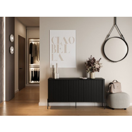 VERA komoda 150 rozměry: V/Š/H - 80cm/150cm/39,60cm materiál: korpus: dřevotřísková deska 16mm čela: laminovaná MDF deska 18mm Nohy: kovové (černé), výška 20 cm Úchyt: systém PUSH TO OPEN