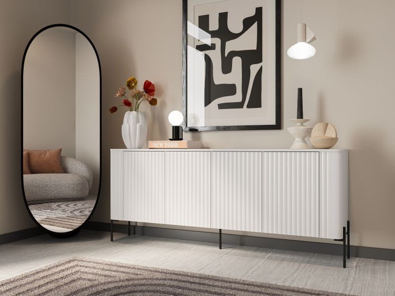 VERA komoda 190 rozměry: V/Š/H - 80cm/190cm/39,60cm materiál: korpus: dřevotřísková deska 16mm čela: laminovaná MDF deska 18mm Nohy: kovové (černé), výška 20 cm Úchyt: systém PUSH TO OPEN