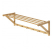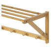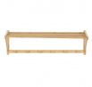 Nástěnná police s věšáky je vyrobena z masivního bambusu v přírodním odstínu, který přináší do interiéru příjemnou a teplou atmosféru. Police nabízí praktické horní místo pro odkládání drobných předmětů či dekorací, zatímco spodní část je vybavena šesti pevnými věšáky pro zavěšení kabátů, klobouků nebo tašek. Bambusové provedení se snadno udržuje a díky pevné montáži na stěnu zajišťuje stabilitu a dlouhou životnost. Design s hladce zaoblenými hranami a přírodní texturou materiálu podtrhuje jednoduchost a funkčnost produktu. Rozměry a nosnost odpovídají běžným požadavkům na domácí i kancelářské využití.