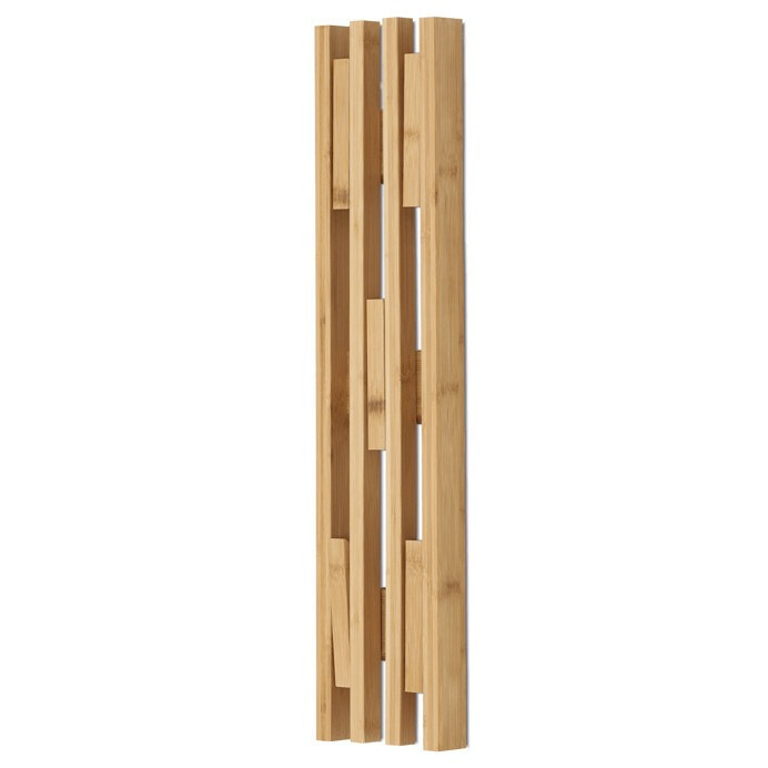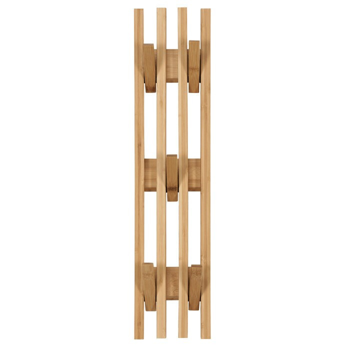 Nástěnný věšák z masivního bambusu v přírodním odstínu nabízí praktické a prostorově úsporné řešení pro zavěšení oděvů či doplňků. Skládací design umožňuje snadné složení věšáku ke zdi, čímž šetří místo v interiéru. Pevné bambusové lamely jsou spojeny tak, aby zajistily stabilitu a dlouhou životnost. Věšák je vybaven několika pevnými háčky, které jsou vhodné pro zavěšení kabátů, klobouků nebo tašek. Díky přírodnímu vzhledu bambusu se hodí do různých stylů bydlení, od moderního po rustikální.
