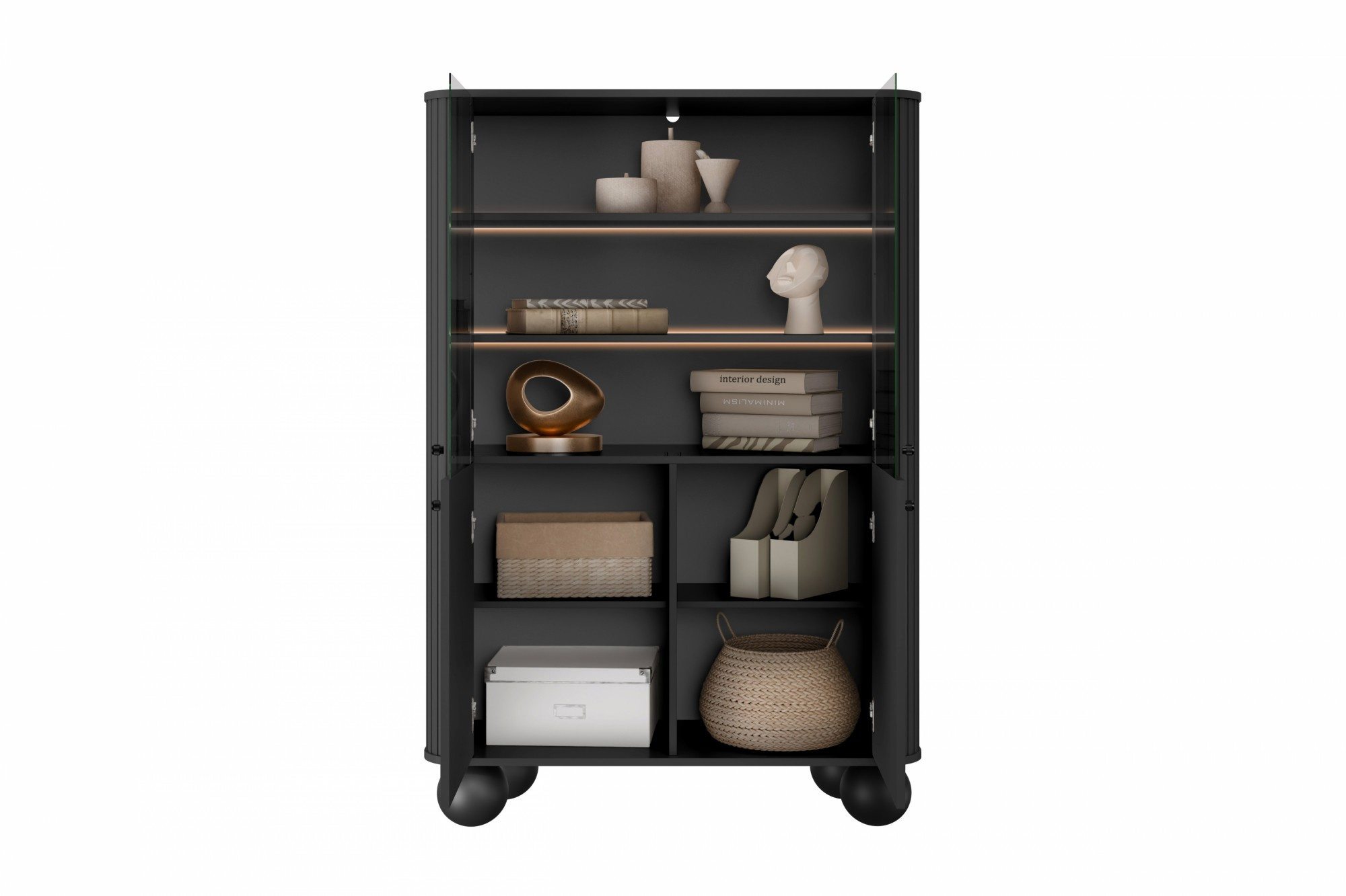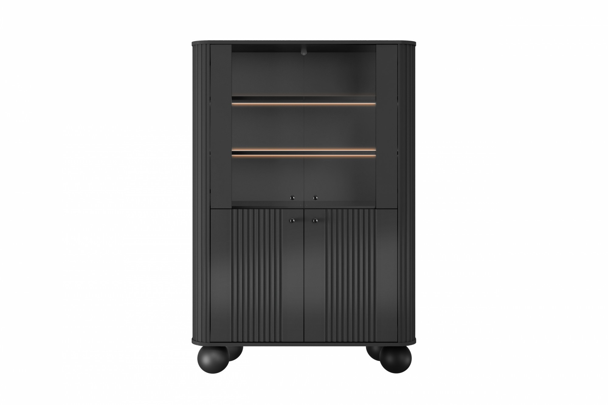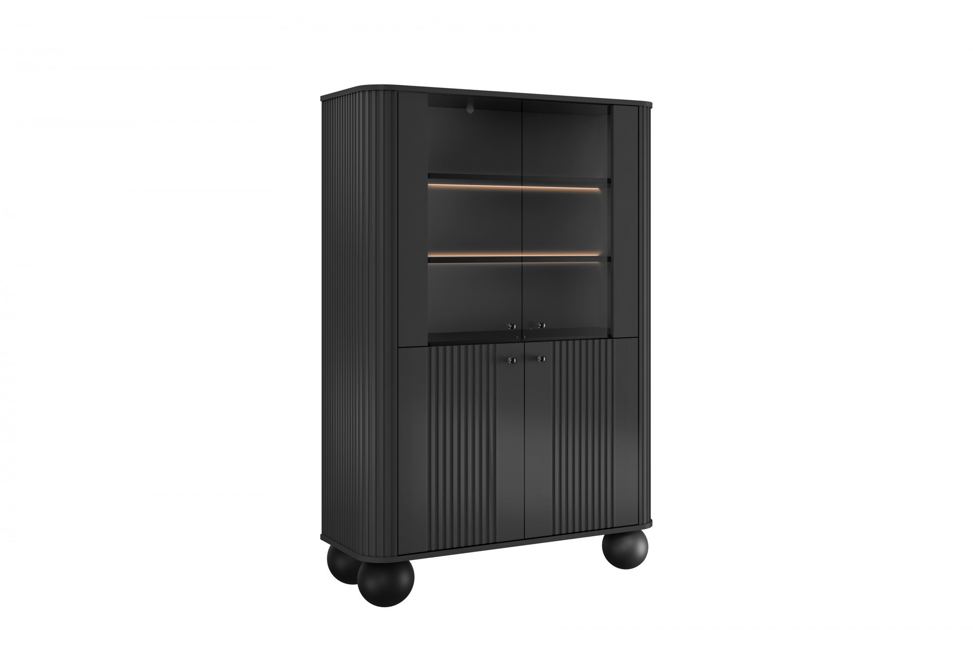 VESPER VITRÍNA 103 4D - černý MDF / černý MDF / černé úchyty / nohy koule