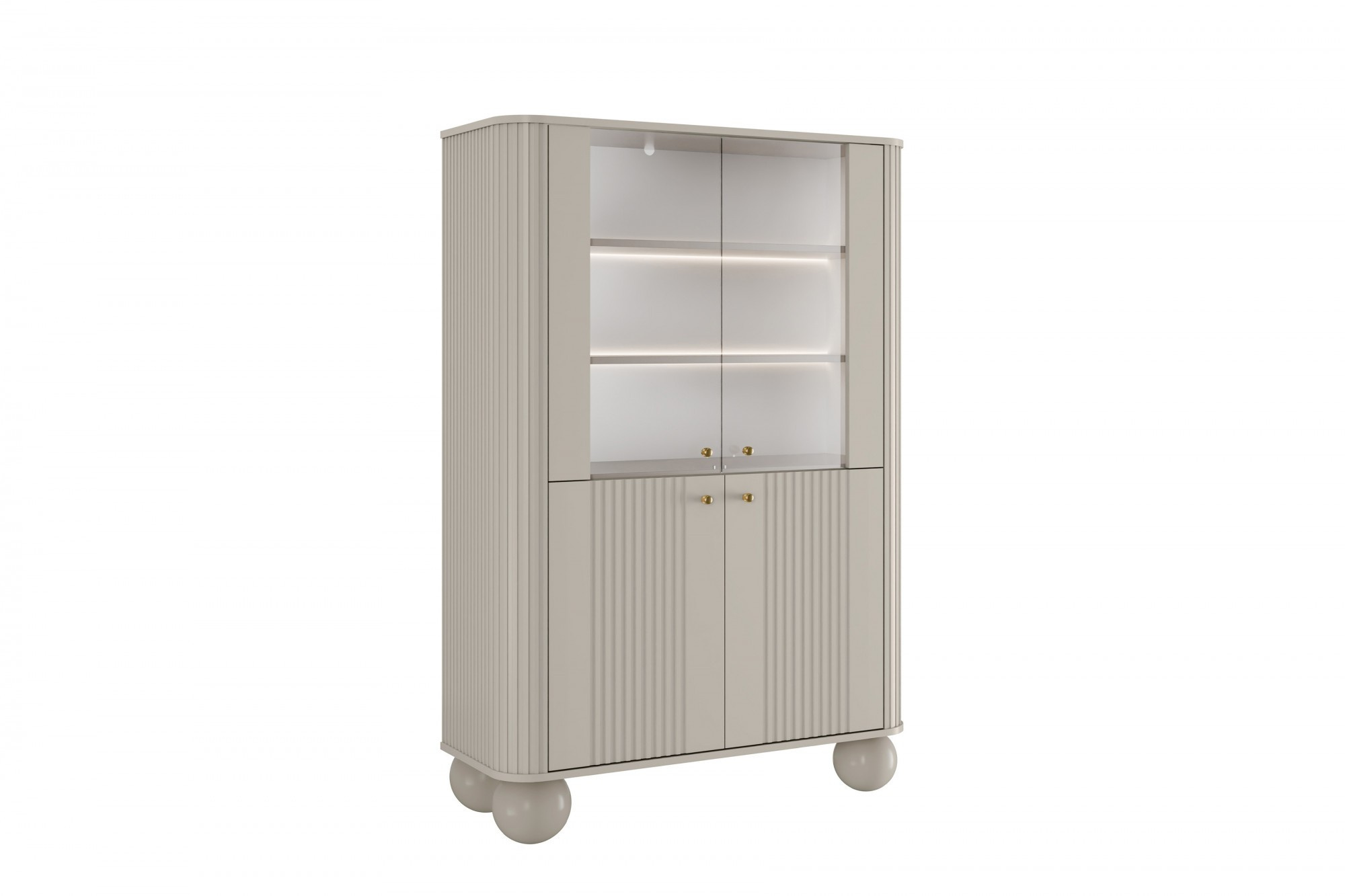 VESPER VITRÍNA 103 4D - kašmír mdf / kašmír / zlaté úchyty / nohy koule