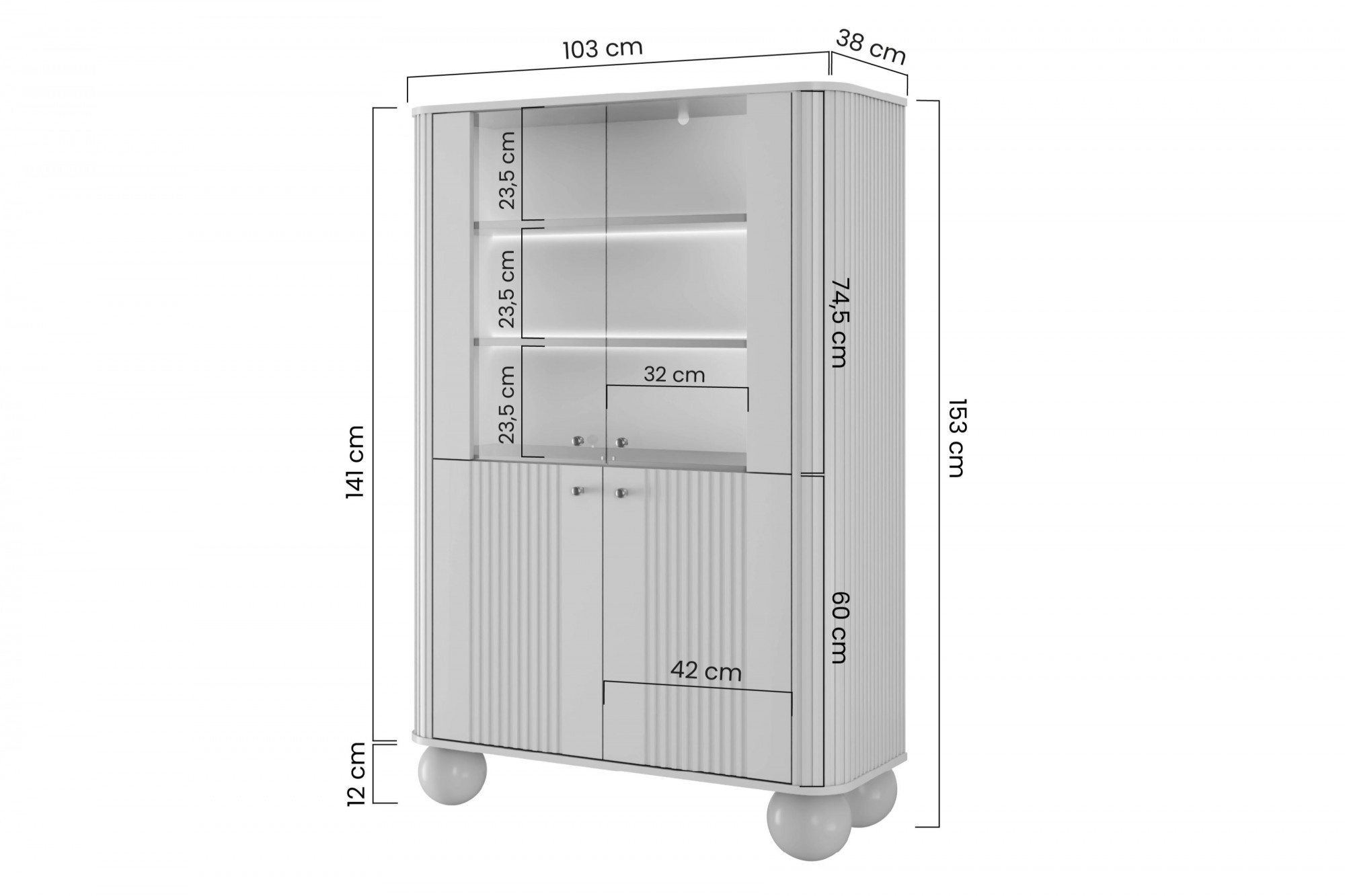 | Typ | s osvětlením, stojací, police |