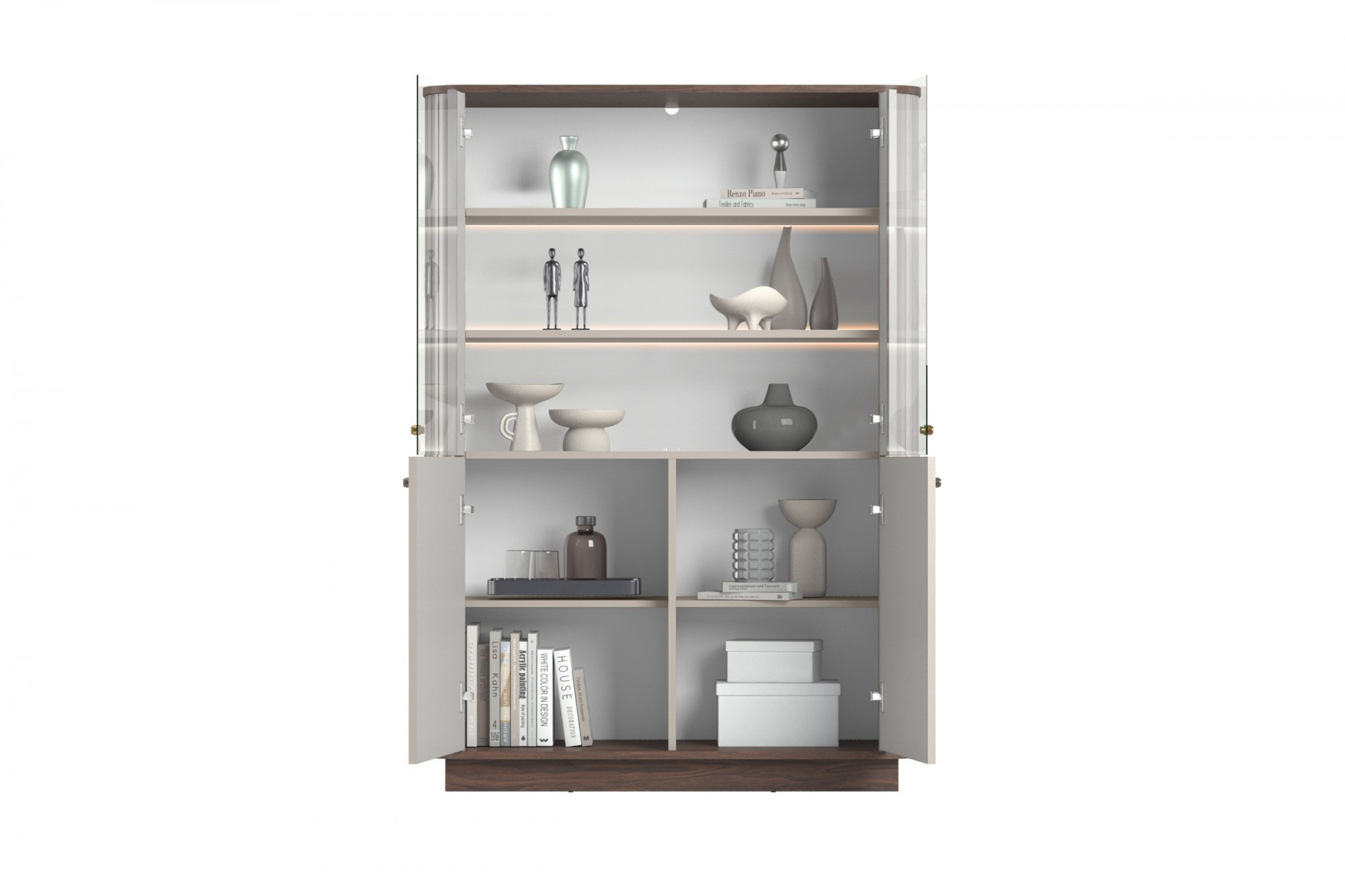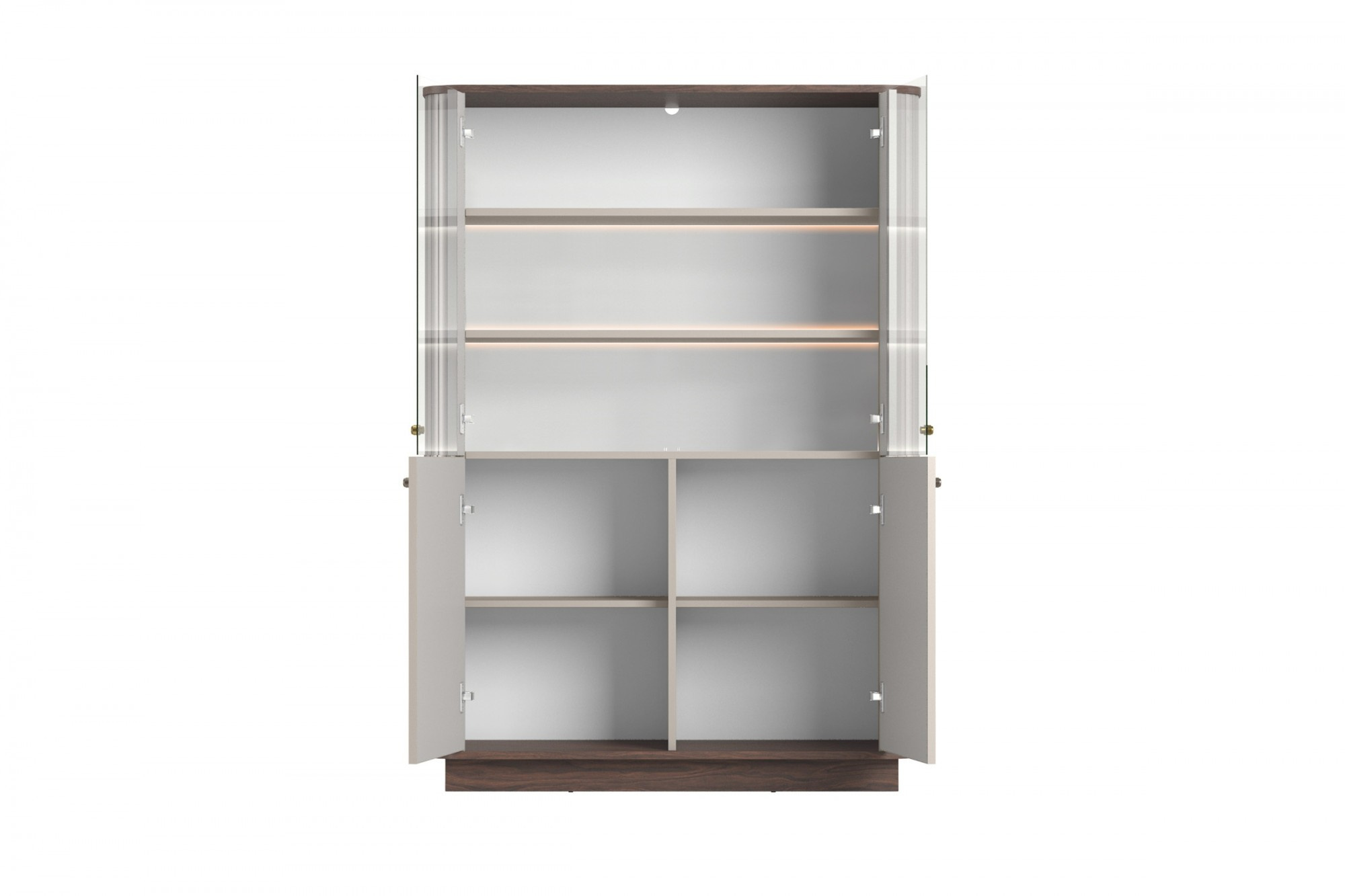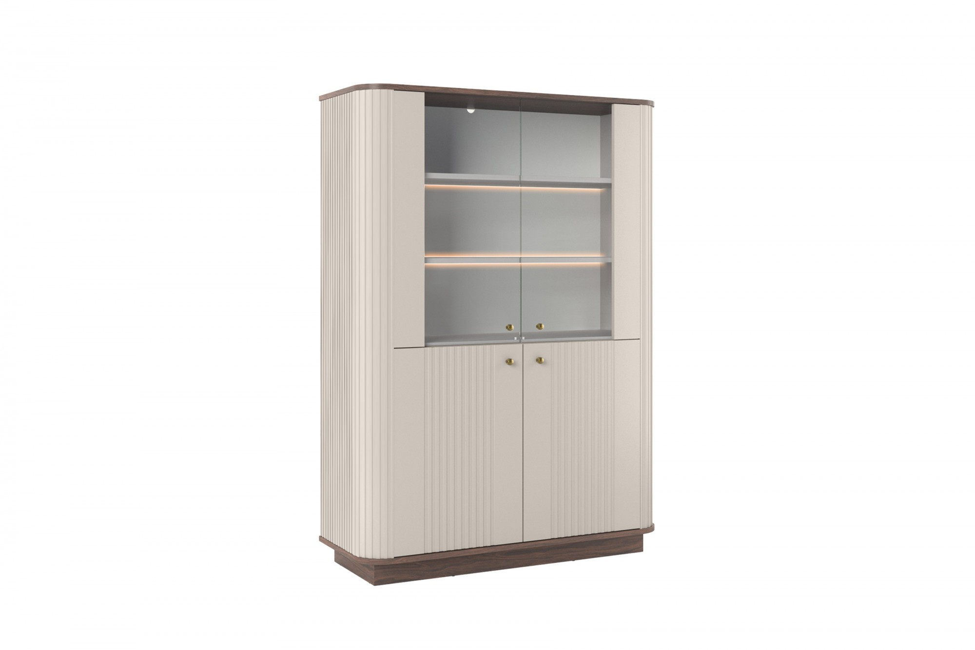 VESPER VITRÍNA 103 4D - kašmírové MDF / ořech / zlaté úchyty / sokl