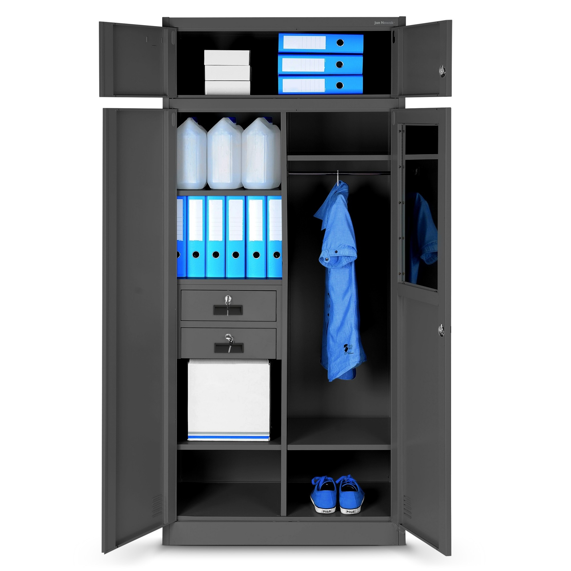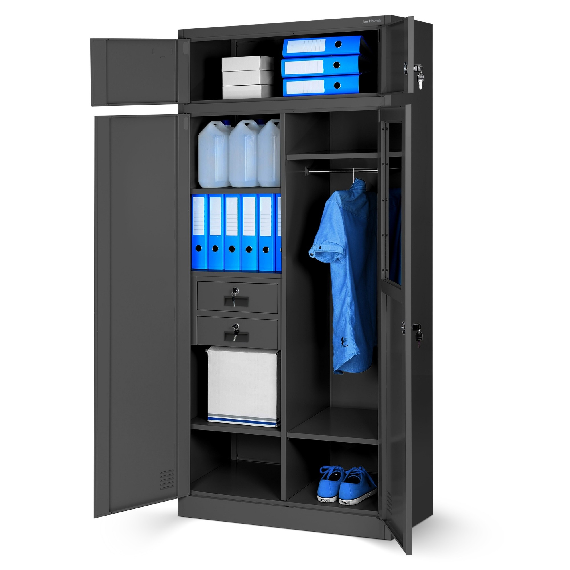 Plechová šatní skříň uzamykatelná s místem na oblečení BORYS, 900 x 1850 x 500 mm, antracitová