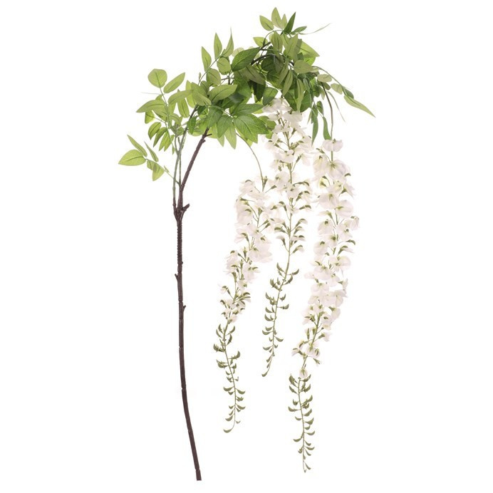 Umělá větev vistárie v krémovém odstínu přináší do interiéru jemný a přirozený vzhled květů s převislými latami. Textilní květy a listy jsou detailně zpracované, což vytváří věrný dojem živé rostliny. Větev je vhodná pro aranžmá v květináčích, váze nebo jako dekorace na stěnu či nábytek. Díky umělému provedení nevyžaduje žádnou údržbu a dlouhodobě si zachovává svůj vzhled.