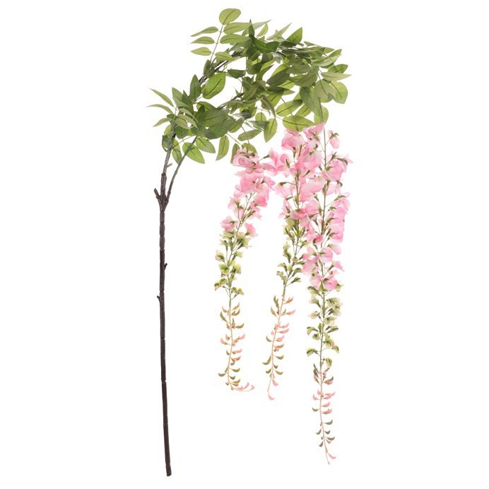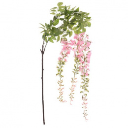 Umělá větev vistárie v růžovém provedení přináší do interiéru jemný a svěží dekorativní prvek. Textilní květy s převislými větvemi věrně napodobují přirozený vzhled této kvetoucí rostliny. Větev je vhodná pro aranžmá v květináčích, váze nebo jako součást dekorativních kompozic, kde dodá prostoru barevný akcent a přírodní atmosféru.