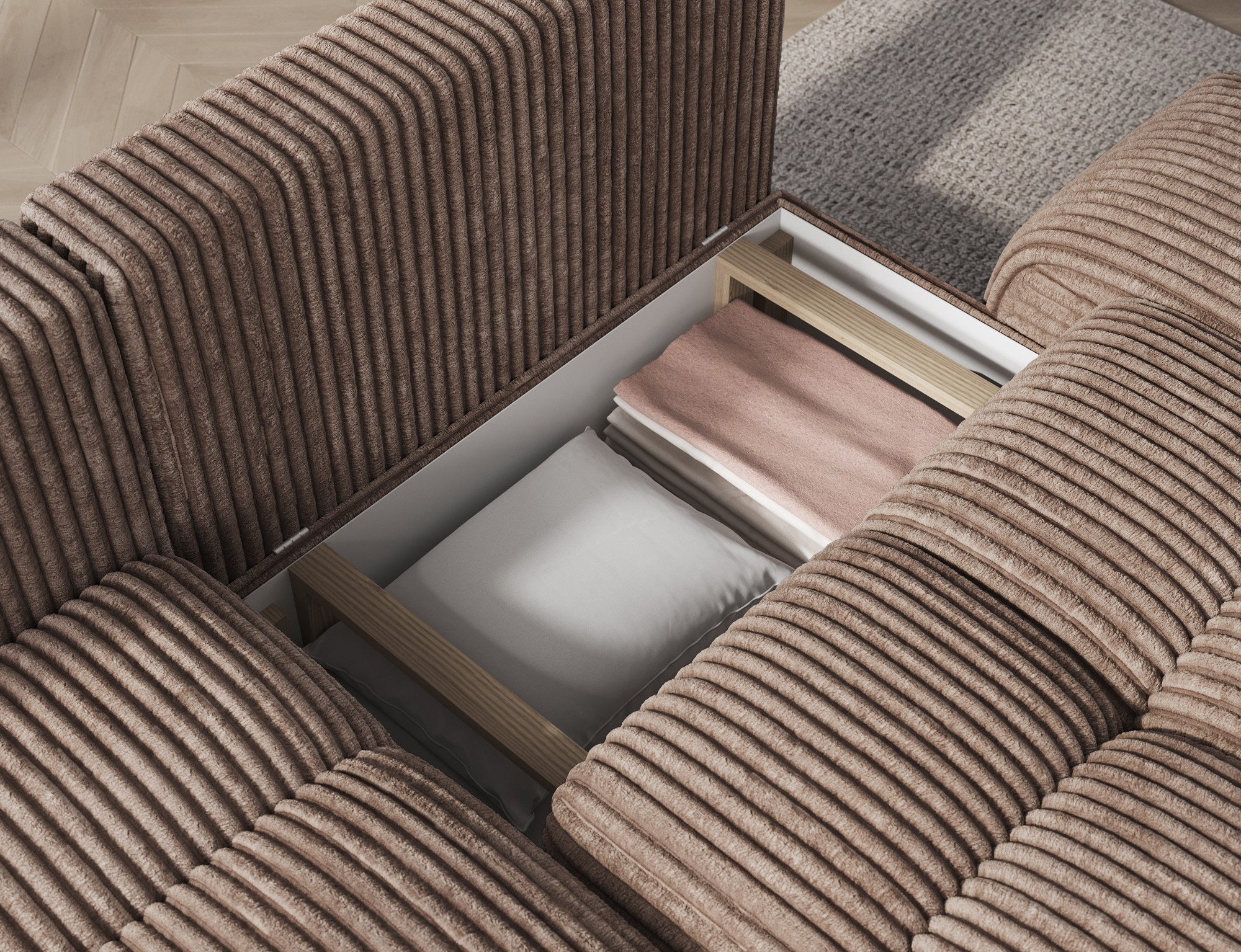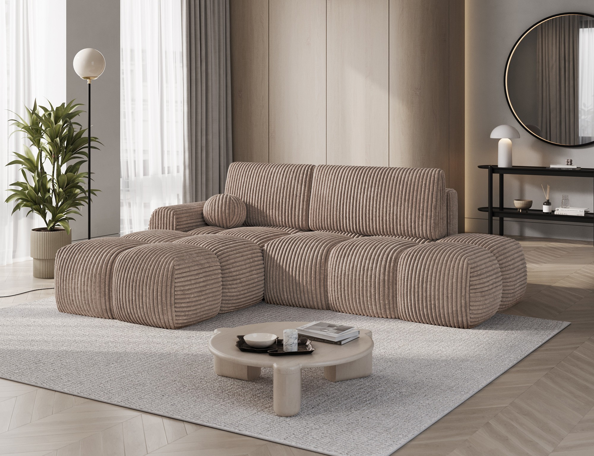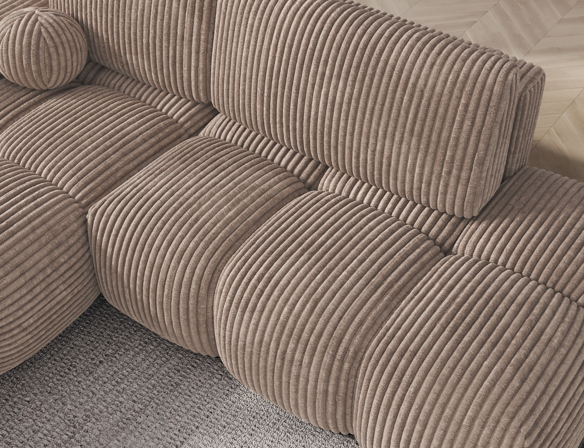 Rohová pohovka Vittario je moderní a funkční kus nábytku navržený pro maximální pohodlí. Jeho kubický tvar a jemné linie se dokonale snoubí s moderními interiérovými designy. Tento kus měří 227 × 170 × 95 cm a váží 115.4 kg, zajišťující stabilitu a dlouhotrvající odolnost. Sedák je vyplněn vlnovou pružinou typu B, pěnou HR3030 a pěnou T2315. Opěradlo se skládá z polštářů naplněných pěnovými granulemi, které se přizpůsobují tělu a poskytují měkké, relaxační pohodlí. Pohovka je vybavena funkcí spaní, která nabízí plochu 95 × 205 cm, a také DL mechanismem s pružinou, který podporuje snadné a rychlé rozložení. Další výhodou je úložný prostor na ložní prádlo, který pomáhá udržovat obývací pokoj uklizený. Vittario je kombinací praktičnosti, estetiky a pohodlí, ideální pro moderní prostory.