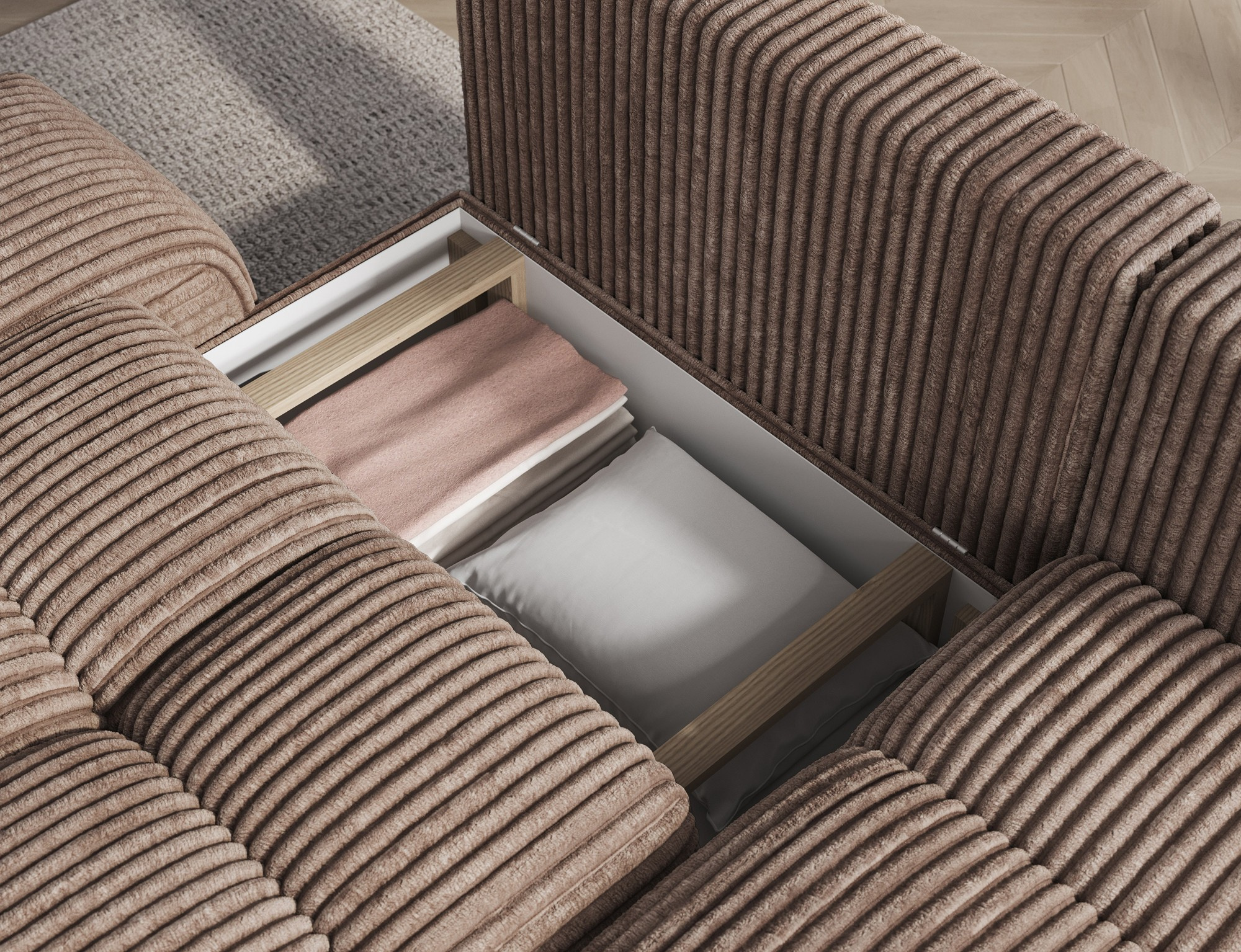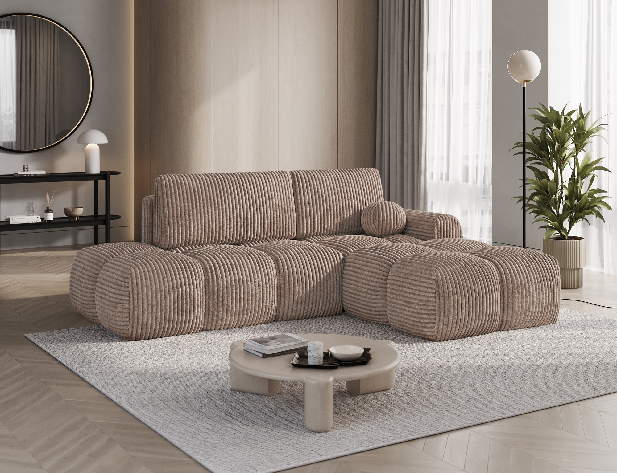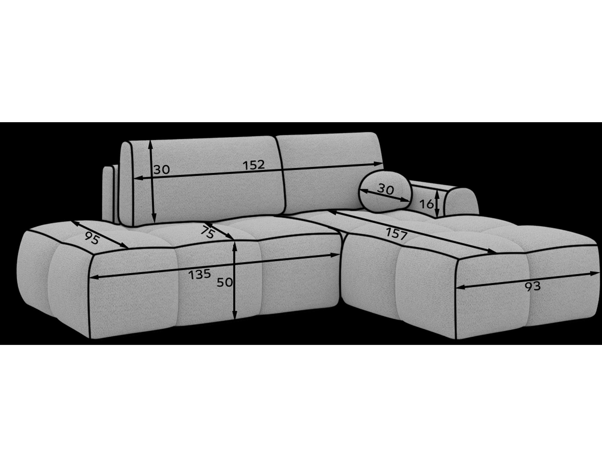 Rohová pohovka Vittario je moderní a funkční kus nábytku navržený pro maximální pohodlí. Jeho kubický tvar a jemné linie se dokonale snoubí s moderními interiérovými designy. Tento kus měří 227 × 170 × 95 cm a váží 115.4 kg, zajišťující stabilitu a dlouhotrvající odolnost. Sedák je vyplněn vlnovou pružinou typu B, pěnou HR3030 a pěnou T2315. Opěradlo se skládá z polštářů naplněných pěnovými granulemi, které se přizpůsobují tělu a poskytují měkké, relaxační pohodlí. Pohovka je vybavena funkcí spaní, která nabízí plochu 95 × 205 cm, a také DL mechanismem s pružinou, který podporuje snadné a rychlé rozložení. Další výhodou je úložný prostor na ložní prádlo, který pomáhá udržovat obývací pokoj uklizený. Vittario je kombinací praktičnosti, estetiky a pohodlí, ideální pro moderní prostory.