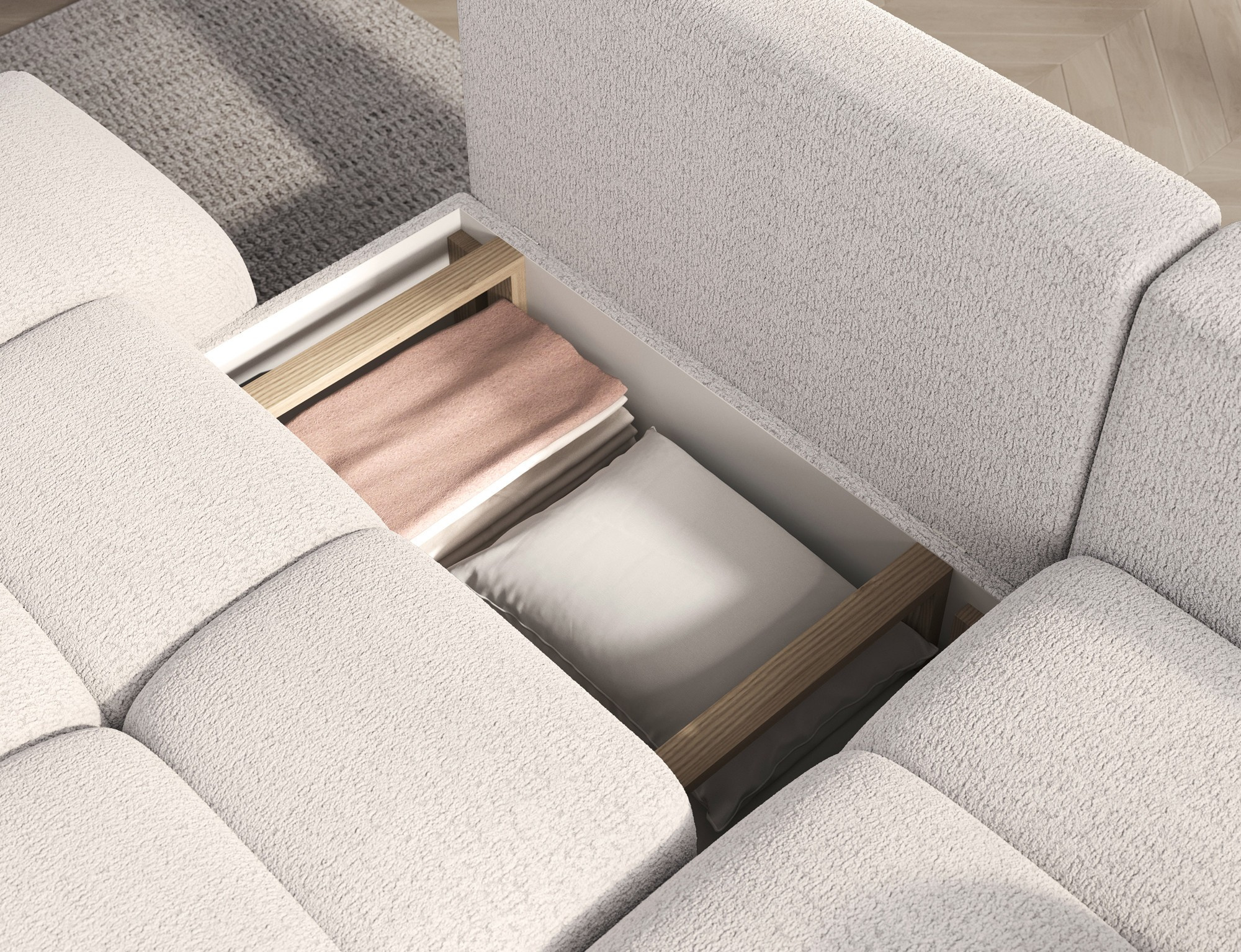 Rohová pohovka Vittario je moderní a funkční kus nábytku navržený pro maximální pohodlí. Jeho kubický tvar a jemné linie se dokonale snoubí s moderními interiérovými designy. Tento kus měří 227 × 170 × 95 cm a váží 115.4 kg, zajišťující stabilitu a dlouhotrvající odolnost. Sedák je vyplněn vlnovou pružinou typu B, pěnou HR3030 a pěnou T2315. Opěradlo se skládá z polštářů naplněných pěnovými granulemi, které se přizpůsobují tělu a poskytují měkké, relaxační pohodlí. Pohovka je vybavena funkcí spaní, která nabízí plochu 95 × 205 cm, a také DL mechanismem s pružinou, který podporuje snadné a rychlé rozložení. Další výhodou je úložný prostor na ložní prádlo, který pomáhá udržovat obývací pokoj uklizený. Vittario je kombinací praktičnosti, estetiky a pohodlí, ideální pro moderní prostory.