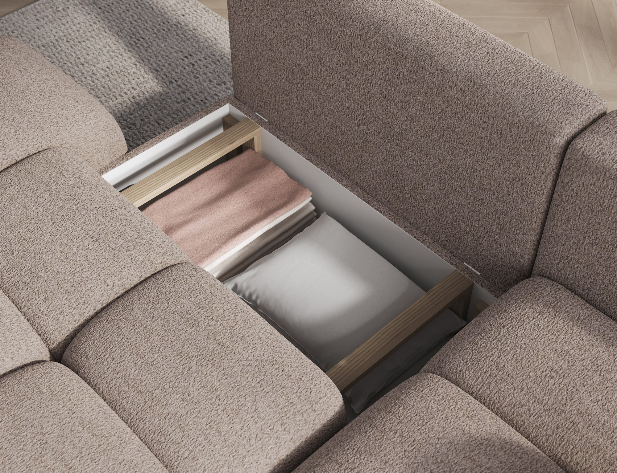 Rohová pohovka Vittario je moderní a funkční kus nábytku navržený pro maximální pohodlí. Jeho kubický tvar a jemné linie se dokonale snoubí s moderními interiérovými designy. Tento kus měří 227 × 170 × 95 cm a váží 115.4 kg, zajišťující stabilitu a dlouhotrvající odolnost. Sedák je vyplněn vlnovou pružinou typu B, pěnou HR3030 a pěnou T2315. Opěradlo se skládá z polštářů naplněných pěnovými granulemi, které se přizpůsobují tělu a poskytují měkké, relaxační pohodlí. Pohovka je vybavena funkcí spaní, která nabízí plochu 95 × 205 cm, a také DL mechanismem s pružinou, který podporuje snadné a rychlé rozložení. Další výhodou je úložný prostor na ložní prádlo, který pomáhá udržovat obývací pokoj uklizený. Vittario je kombinací praktičnosti, estetiky a pohodlí, ideální pro moderní prostory.